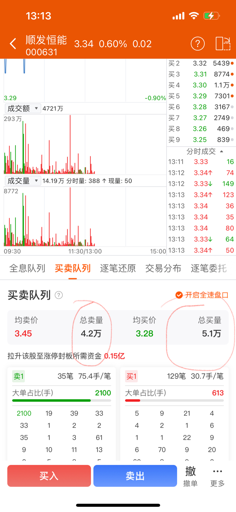 $顺发恒能(SZ000631)$ 买盘大于卖盘不涨,这是什么神仙操作
