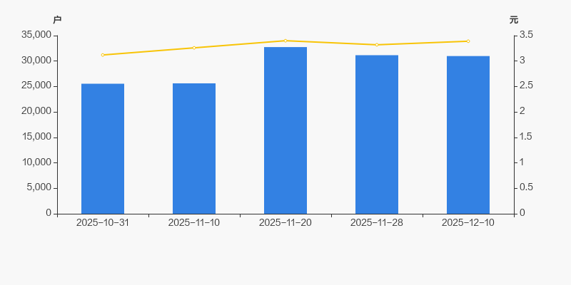 2025年10月31日至今,公司股东户数显著增长,区间涨幅为21.29%。2025年10月31日至2025年12月10日区间股价上涨8.65%。