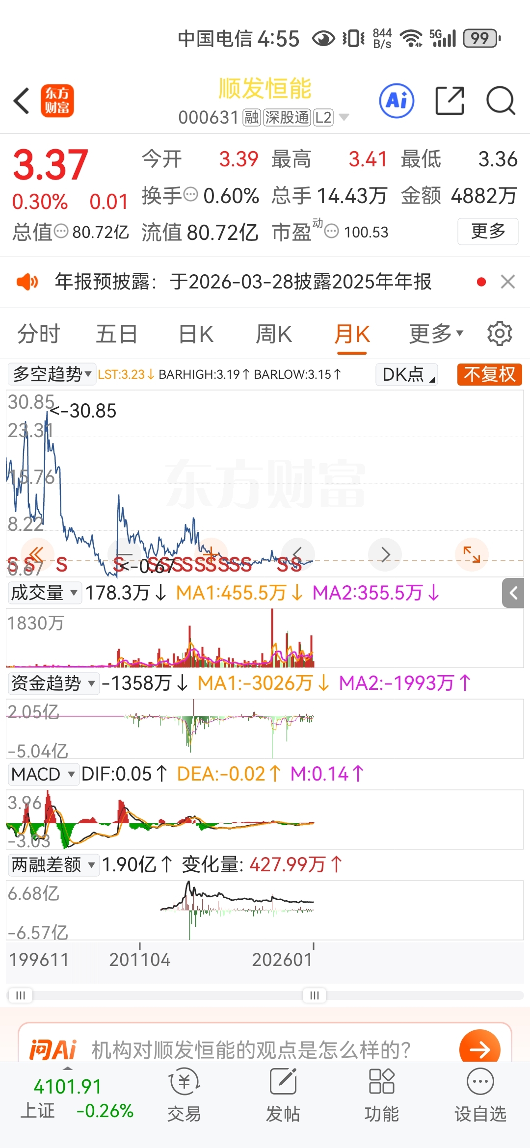 $顺发恒能(SZ000631)$ 风雨过后见彩虹。去寻找已被错杀的强势股,绿发就是长达三十年横盘下跌千年弱势股融资套现跑路票。融资套现票喜跌不喜涨,跟跌不跟涨,三十年绿发股价一路向下,两市最大融资票的耻辱。
