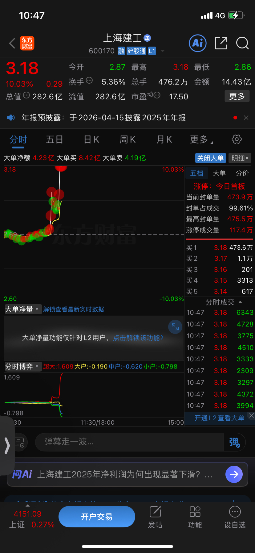 买了一点点上海建工,竟然突然涨停了。