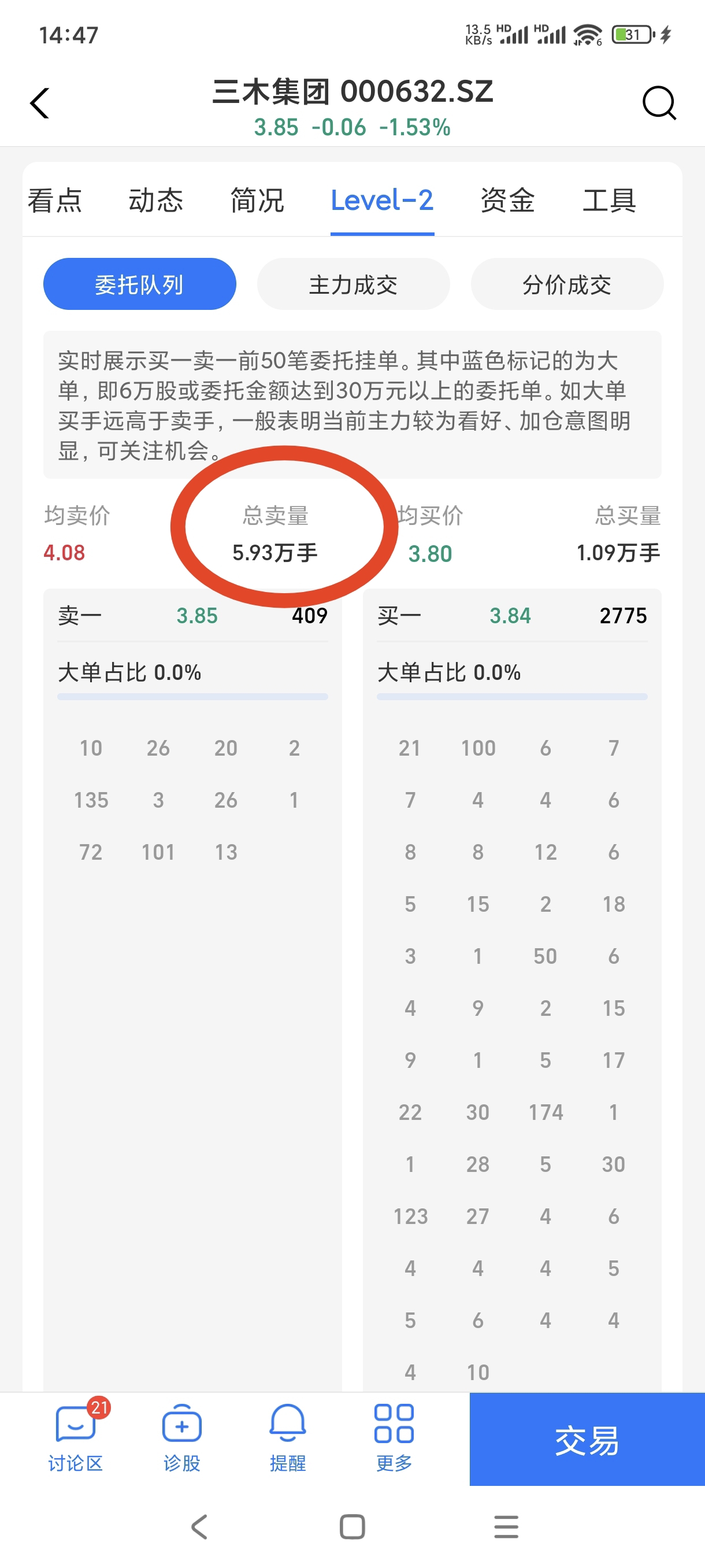 $三木集团(SZ000632)$ 一分不剩全买了,几天来主力没有能力拉涨停,就注定已经是死局。现在里面都是获利单单全都出货,一个多星期来每天都是卖不完的不出货单,又没有见主力入场,大涨是不可能了,顶多是拉高出货。