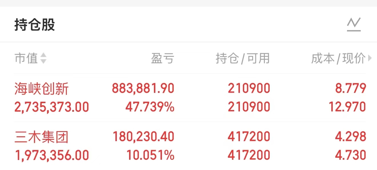 $三木集团(SZ000632)$ $海峡创新(SZ300300)$ #炒股日记# #股市怎么看#