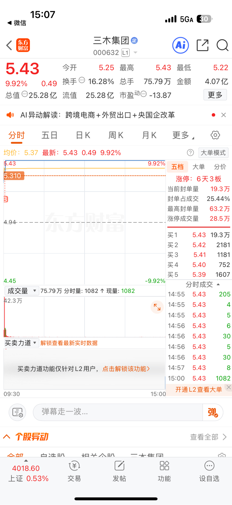 $三木集团(SZ000632)$ 这个走势,明天包一字了