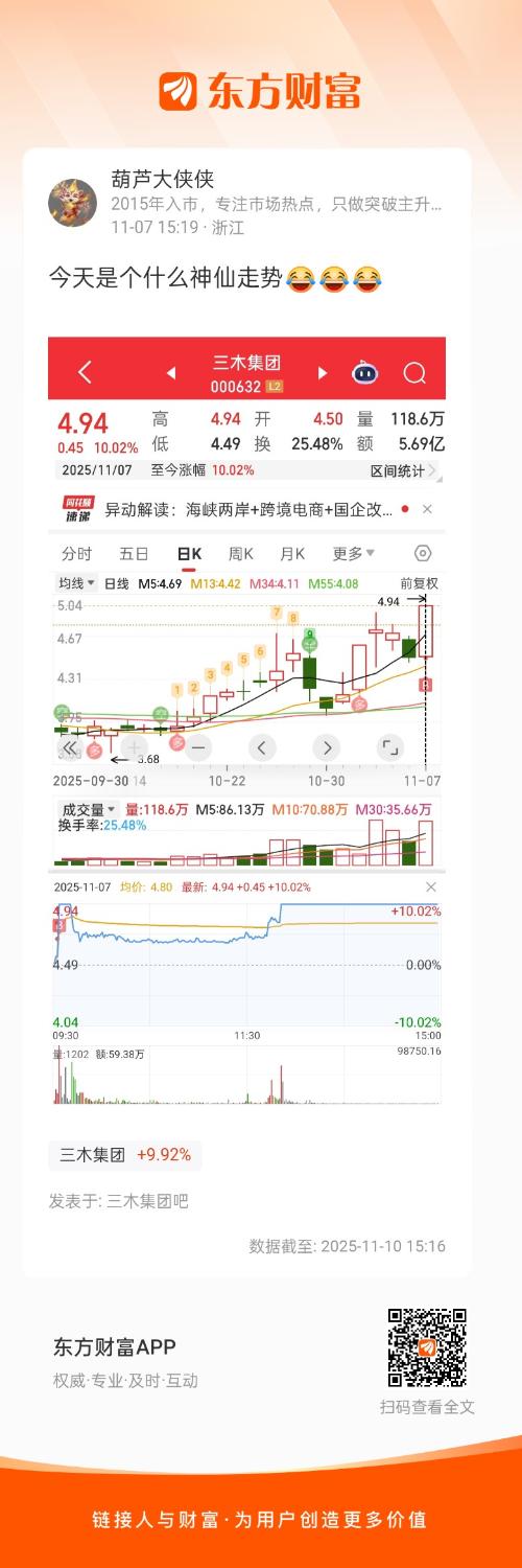 温馨提示: 1.根据《证券法》规定,禁止编造、传播虚假信息或者误导性信息,扰乱证券市场;2.用户在本社区发表的所有资料、言论等仅代表个人观点,与本网站立场无关,不对您构成任何投资建议。用户应基于自己的独立判断,自行决定证券投资并承担相应风险。《东方财富社区管理规定》