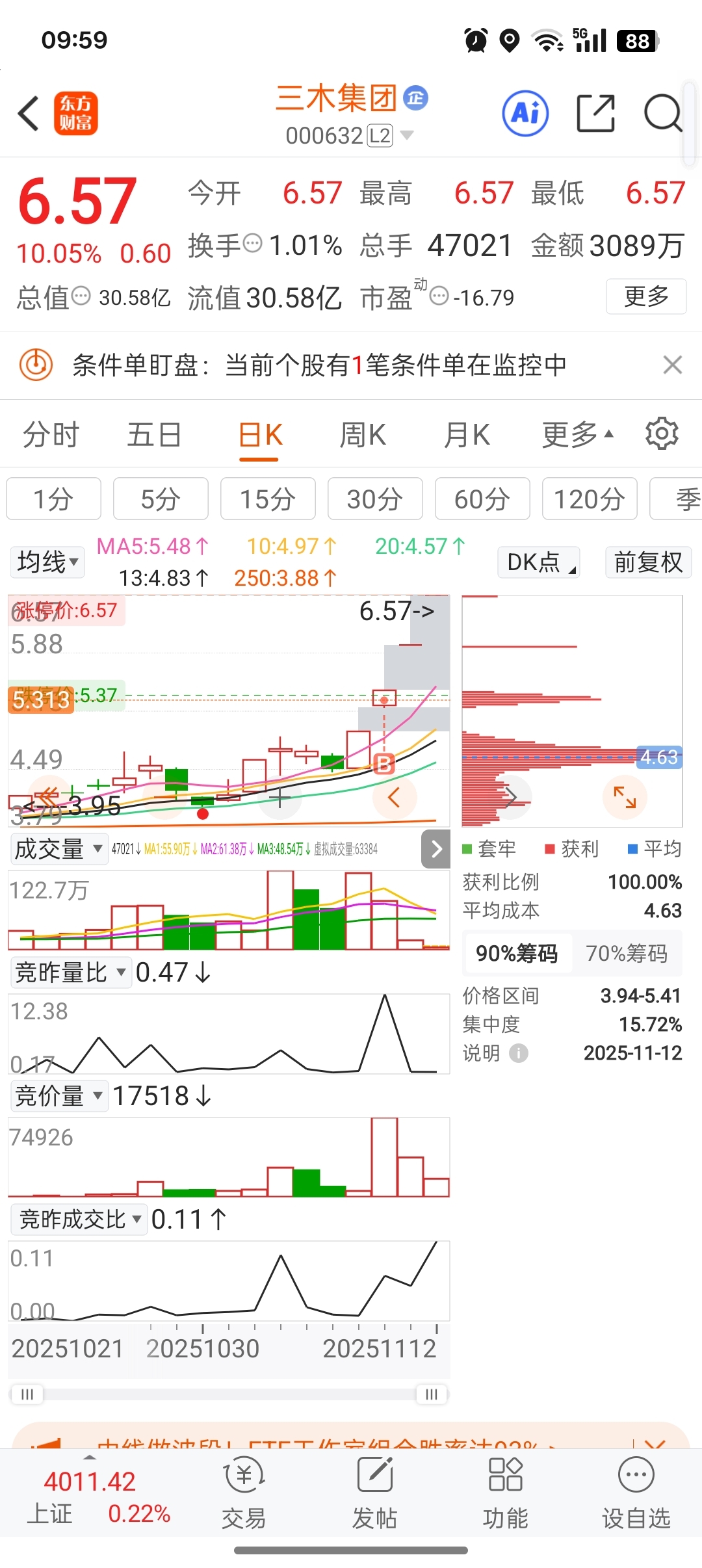 $三木集团(SZ000632)$ 韭菜的悲哀。轻仓就板。重仓就跌。割肉就反包!!!!