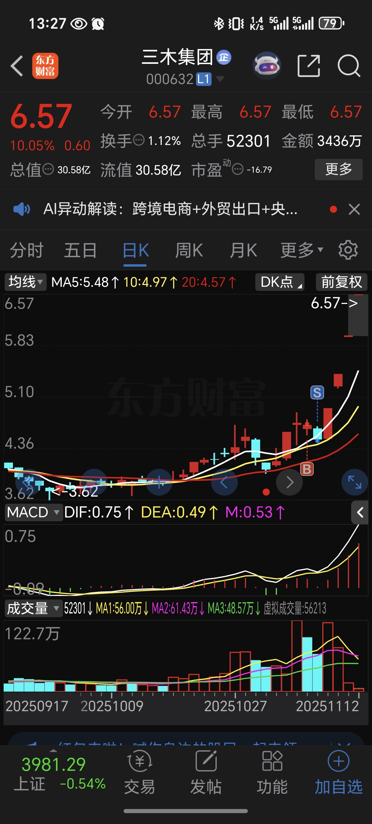 $三木集团(SZ000632)$ 我该说什么