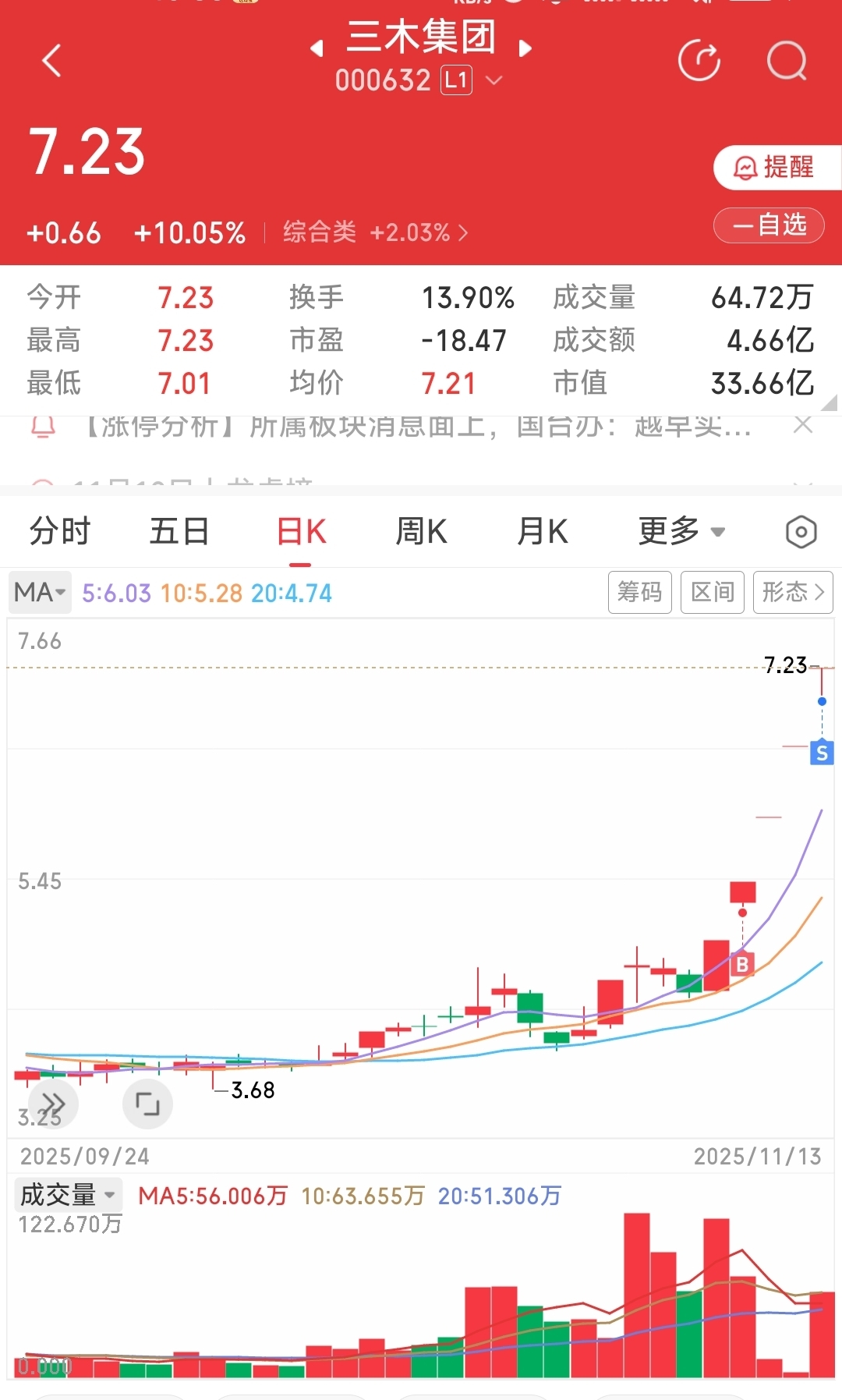 $三木集团(SZ000632)$ 本来打算做个T的,结果呢,T飞了!
