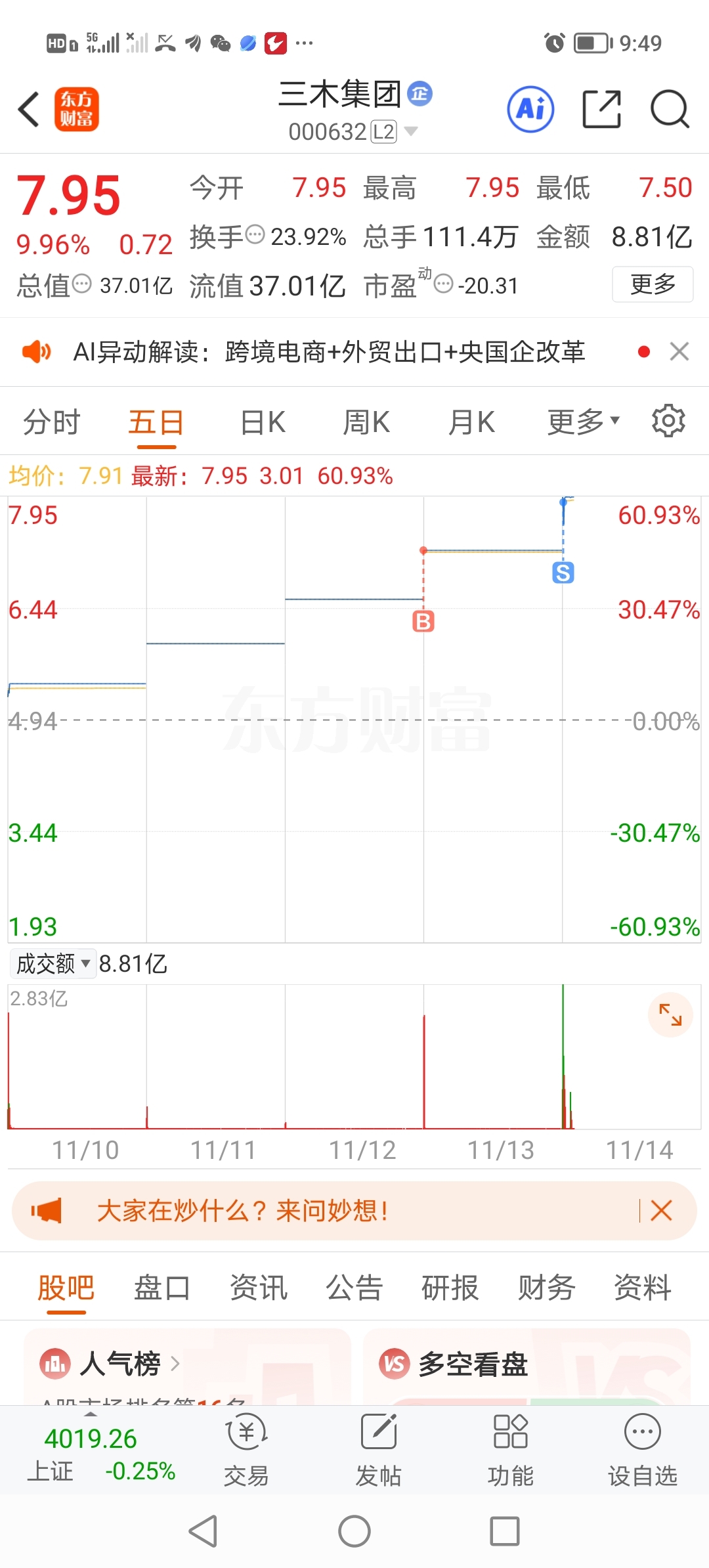 $三木集团(SZ000632)$ 卖错了 可能要成妖股了