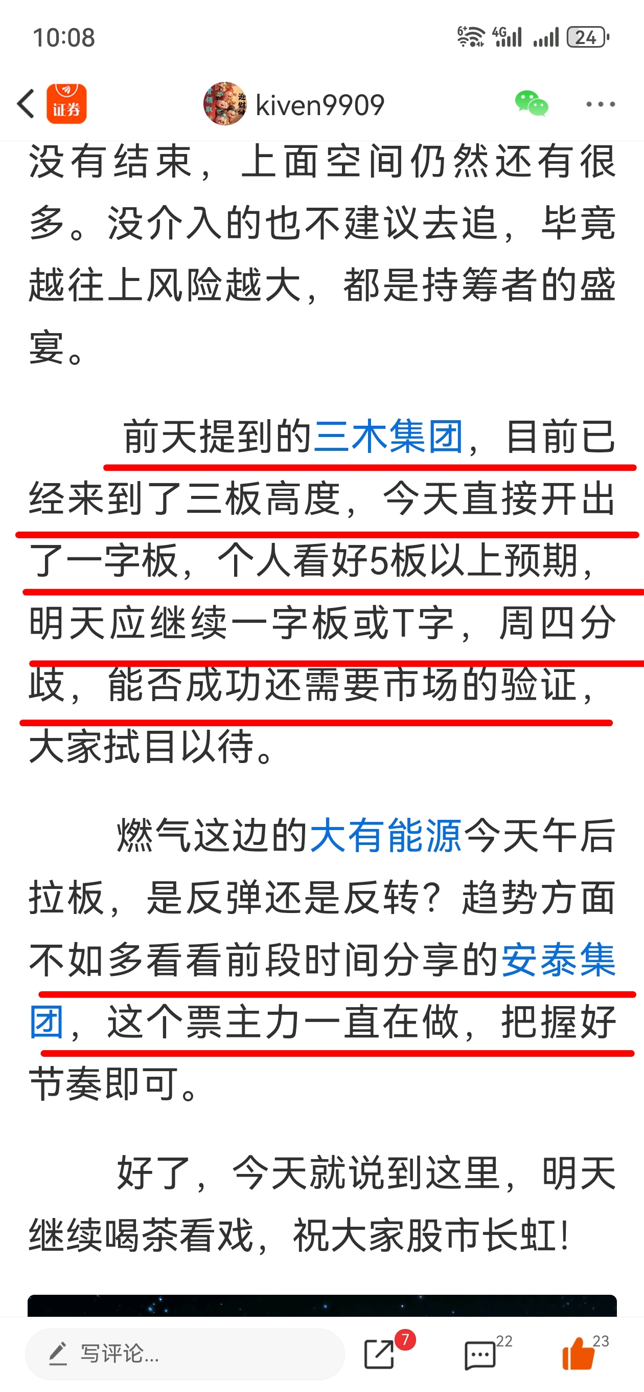 首板当天就关注的,告知大家这就是总龙头,三木可是卡的7号节点,周四也的确开了板,