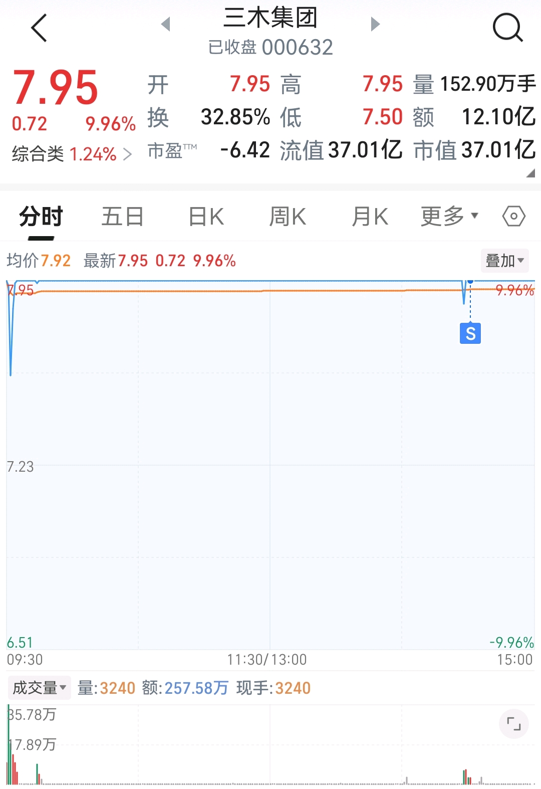 $三木集团(SZ000632)$ 今天卖出了,三字头都倒下了