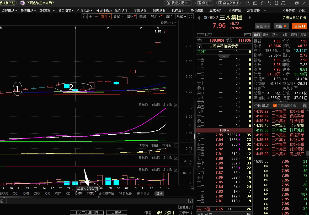 单阳突破交易系统:三木集团1单阳突破添加自选(可跟踪的参考信号)2股价缩量会抽寻