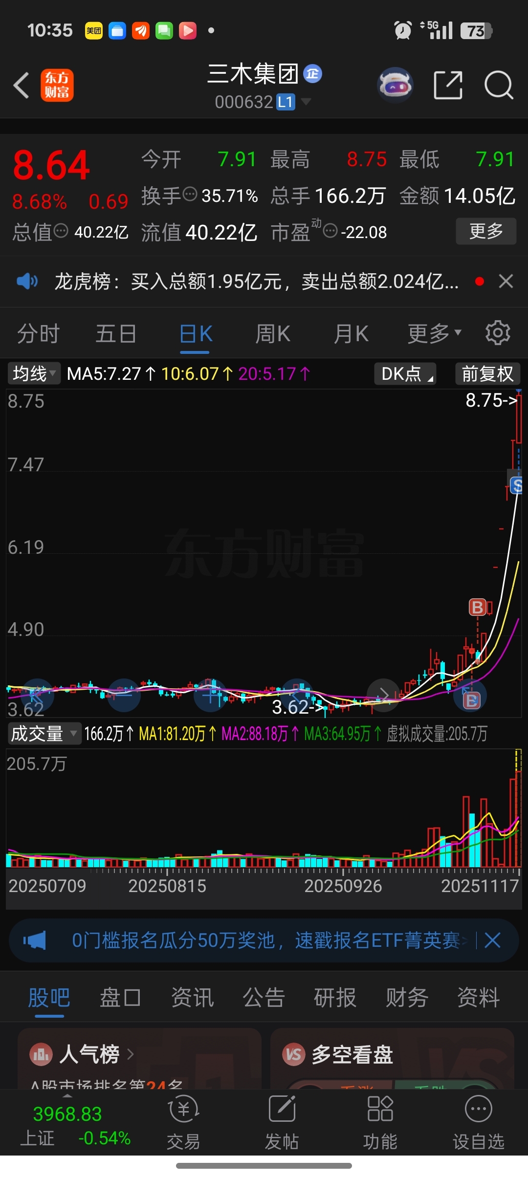 $三木集团(SZ000632)$ 纪念一下,15万入市,最多时候赔了9.3万,今天回本了,好想大哭一场。