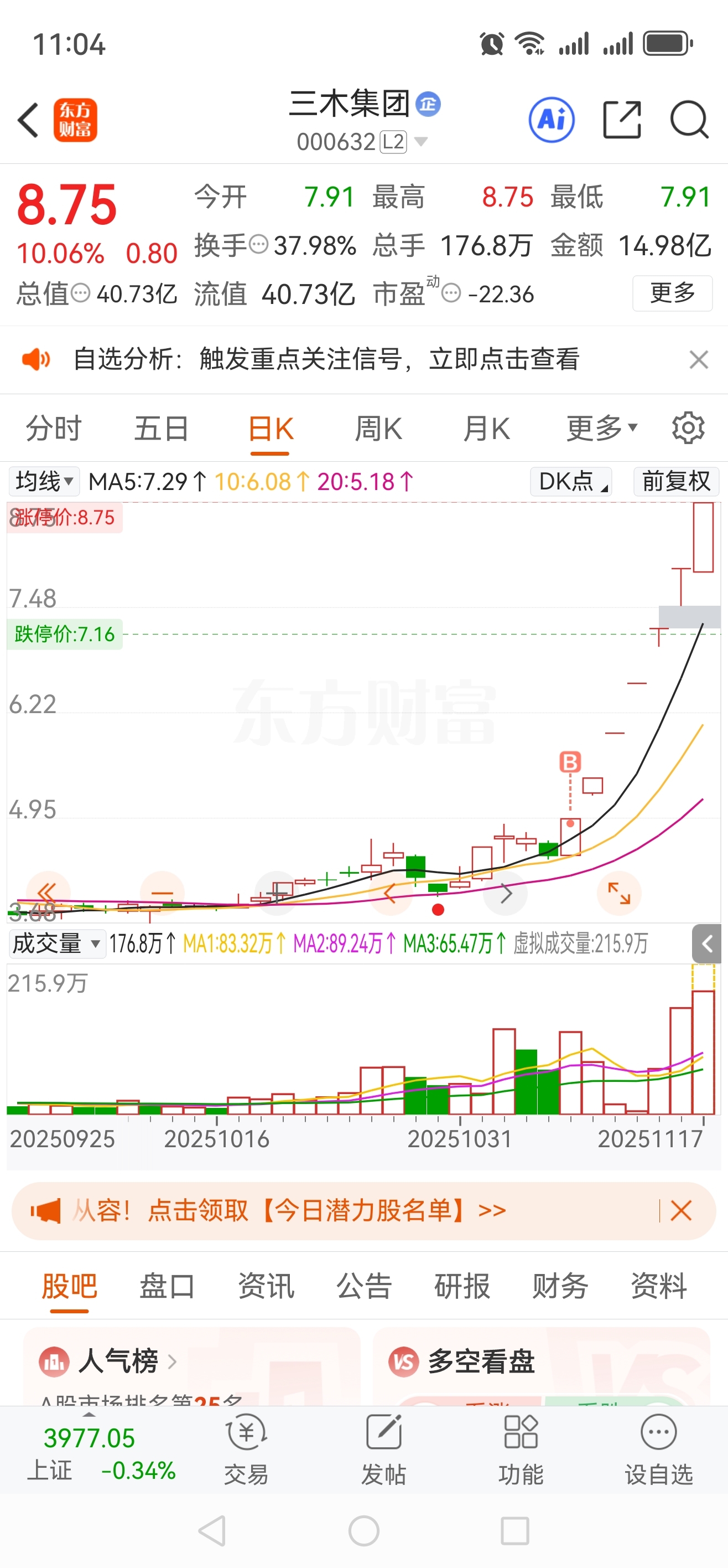 $三木集团(SZ000632)$ 首板进去目前还在的应该不多了吧