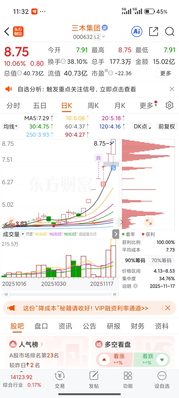$三木集团(SZ000632)$ 赶紧跑,下午肯定要炸