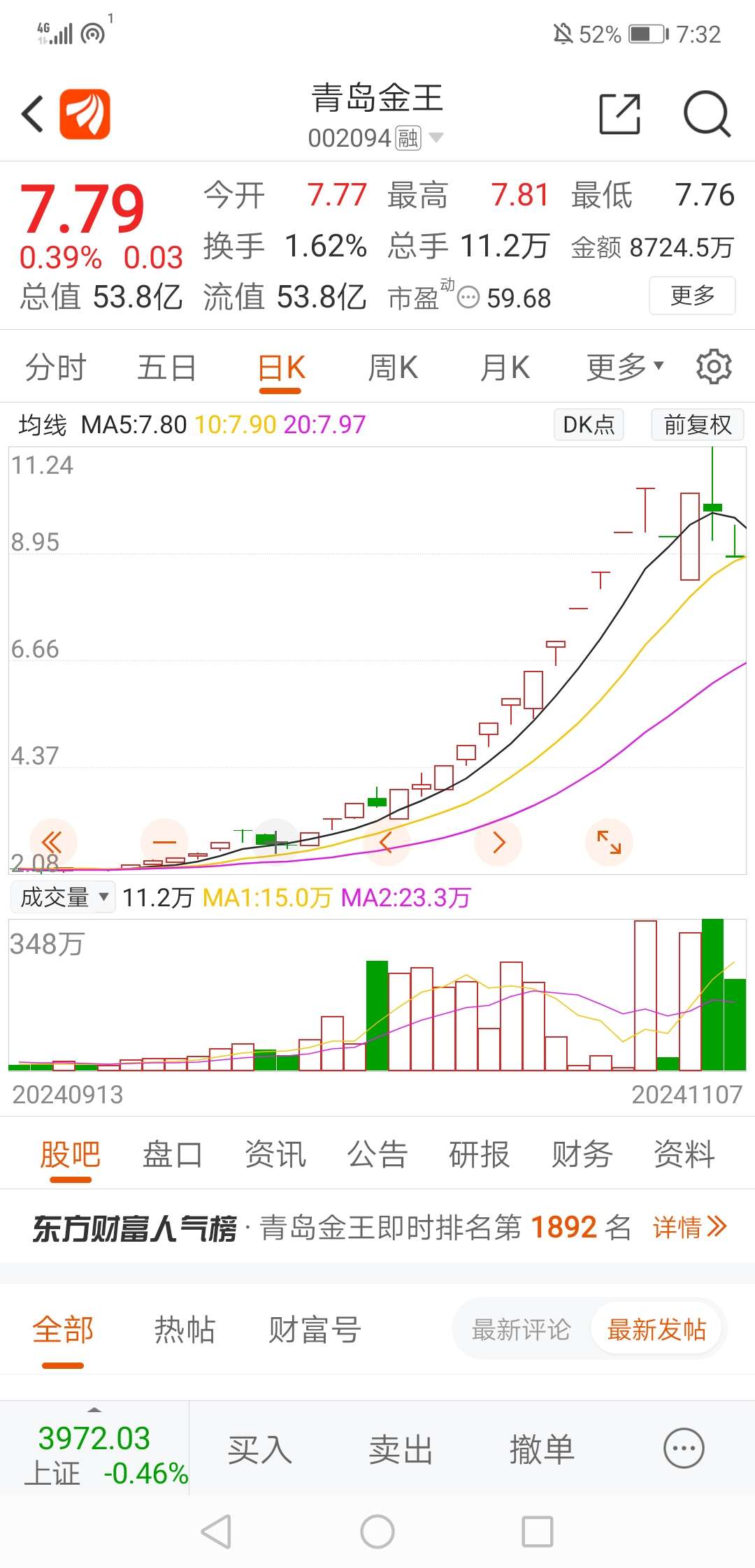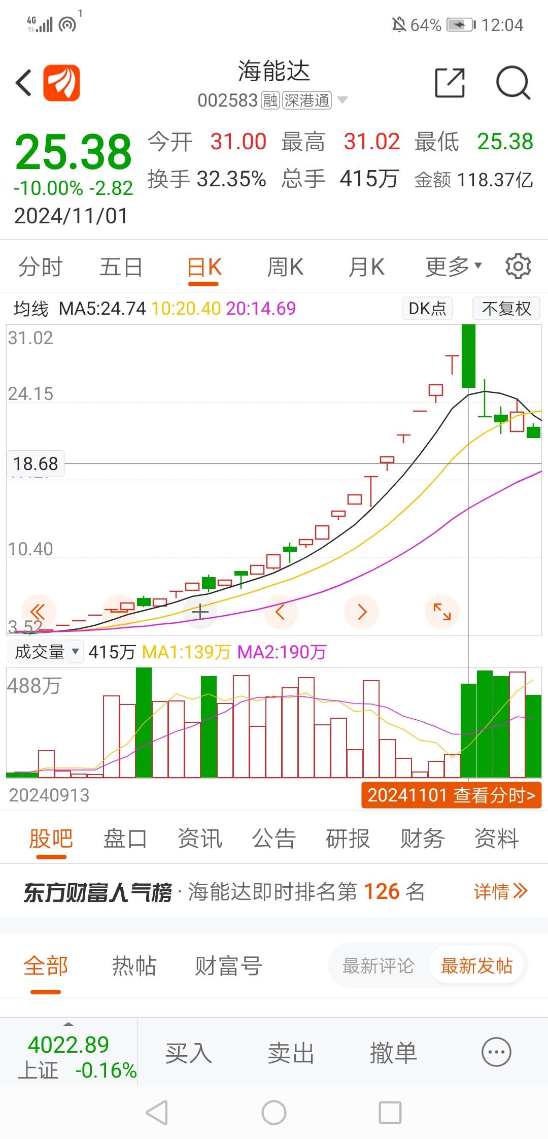真是天时地利人和。天时:指的是合富、平潭、海峡全都停牌了。平潭发展(或合富中国)