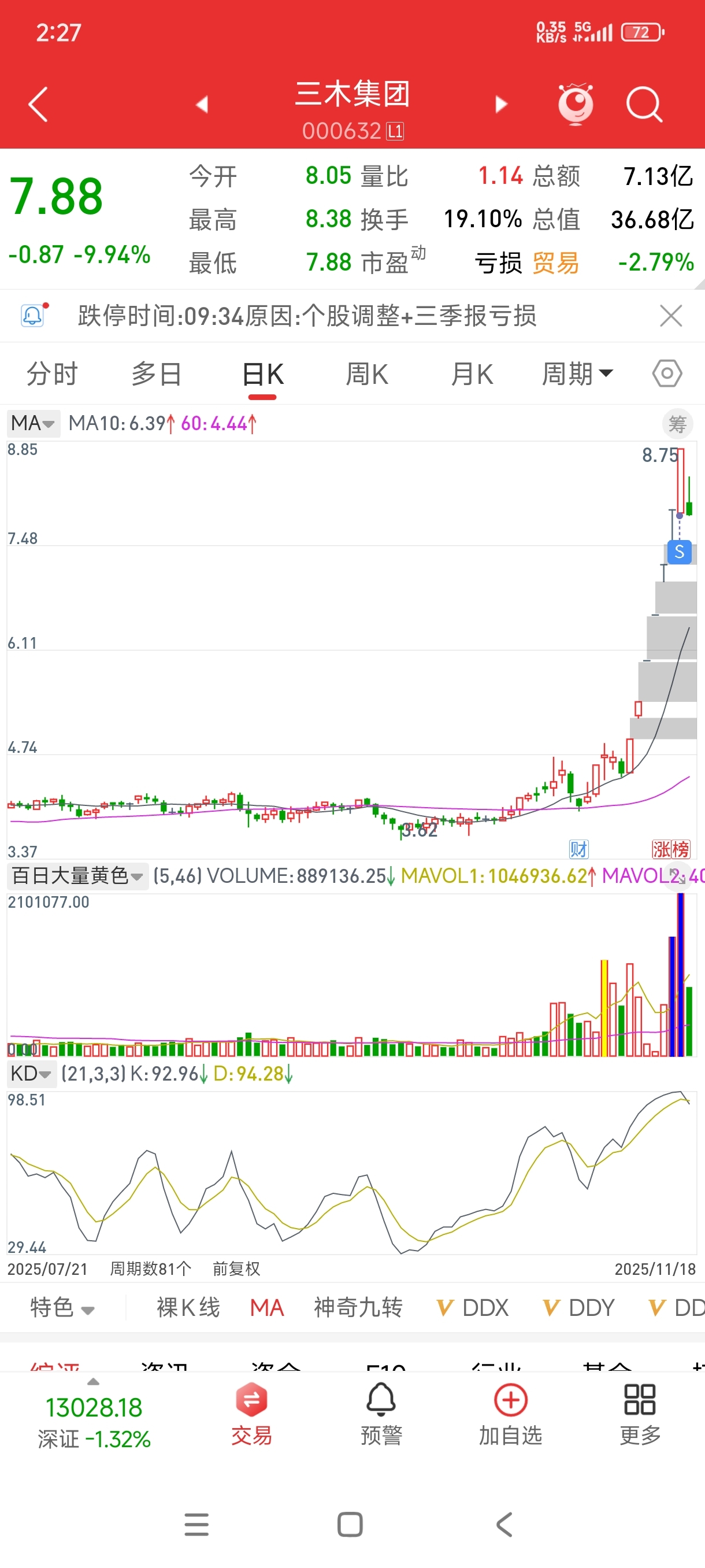 $三木集团(SZ000632)$ 太恐怖了,今天