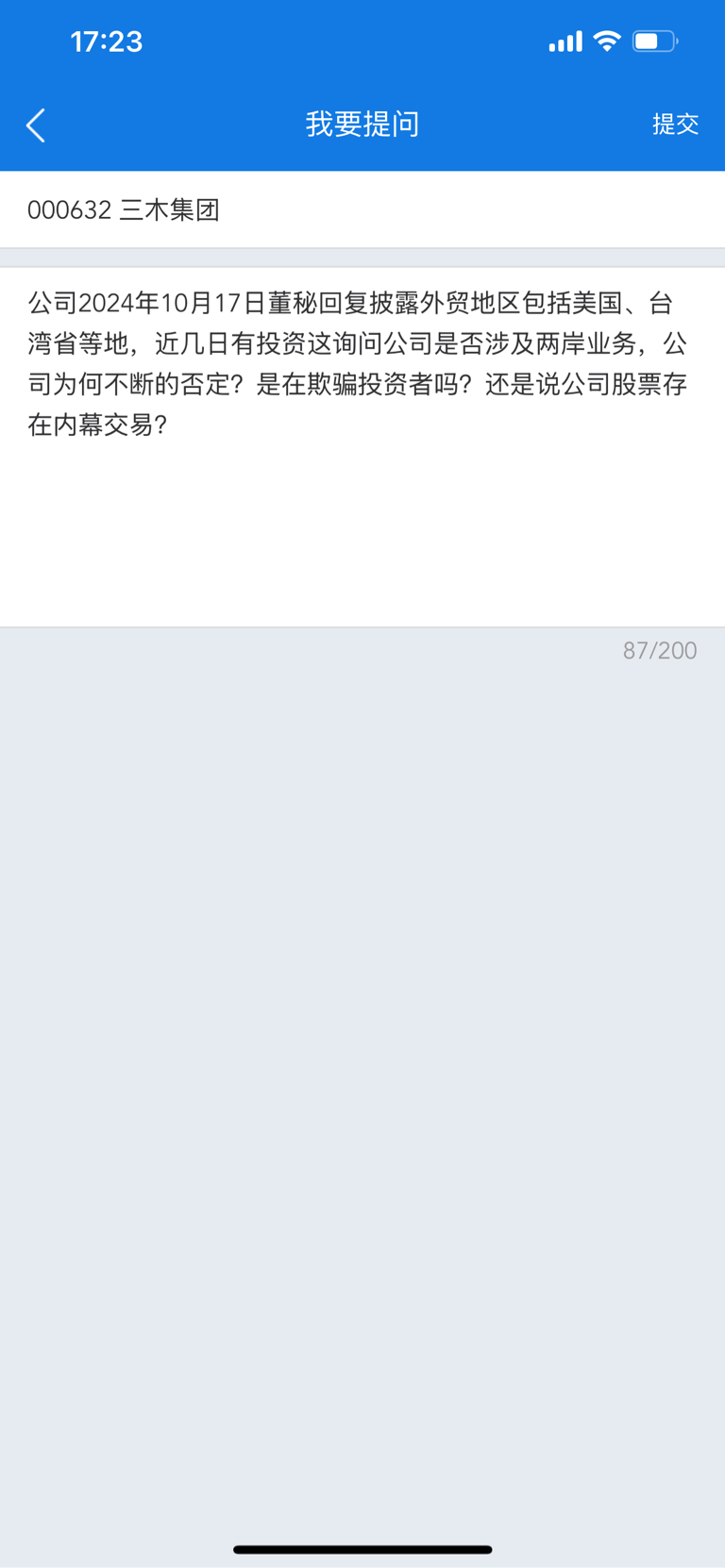$三木集团(SZ000632)$ 给,被按的,每人复制问一遍,明天翘开大家一块走
