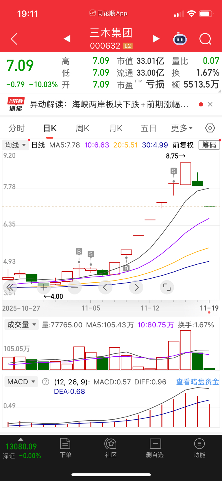 $三木集团(SZ000632)$ 感觉这货有二波可能,而且周一板上大资金都被埋了,昨天今天出不来情绪有爆点,明天敢跌停开百分百有抢筹我也会去扫一笔,这货明天有的地天的可能顺便开启二波!
