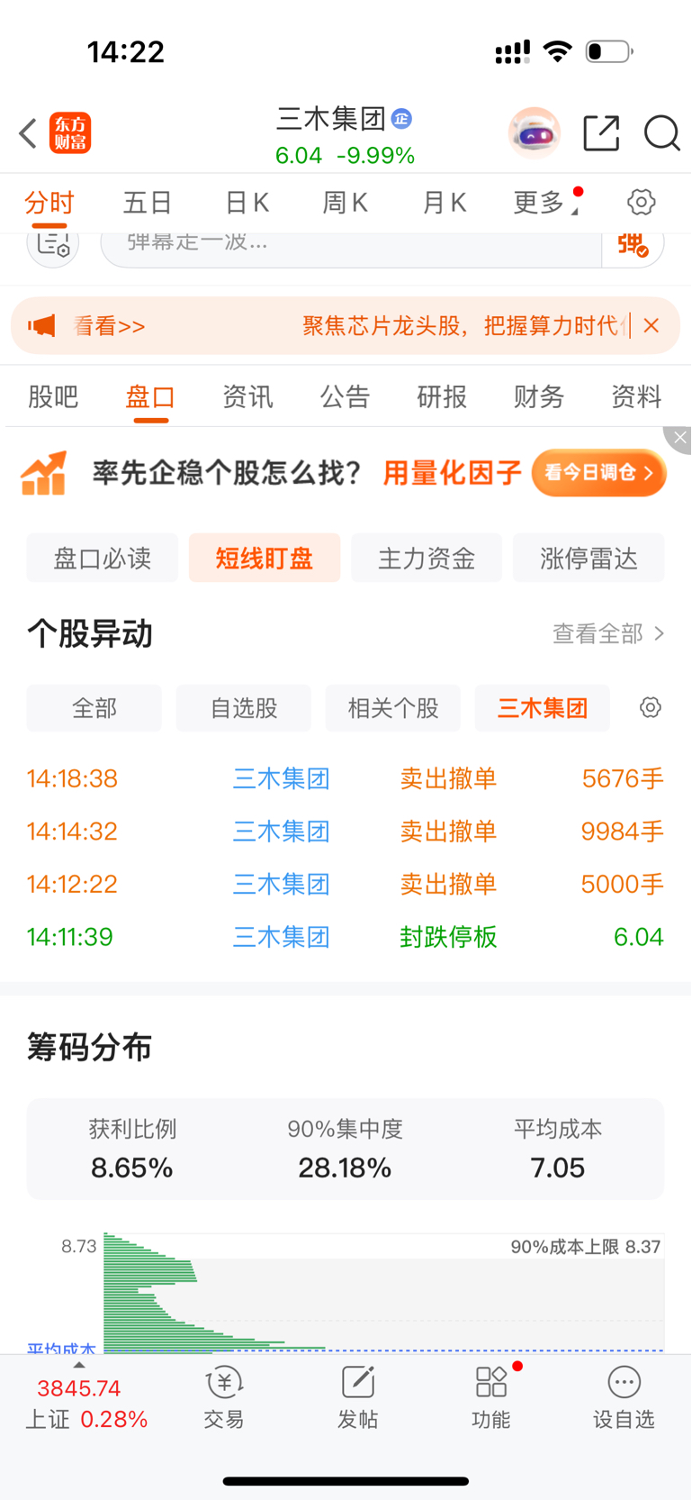 $三木集团(SZ000632)$ 还能开吗?连续撤单