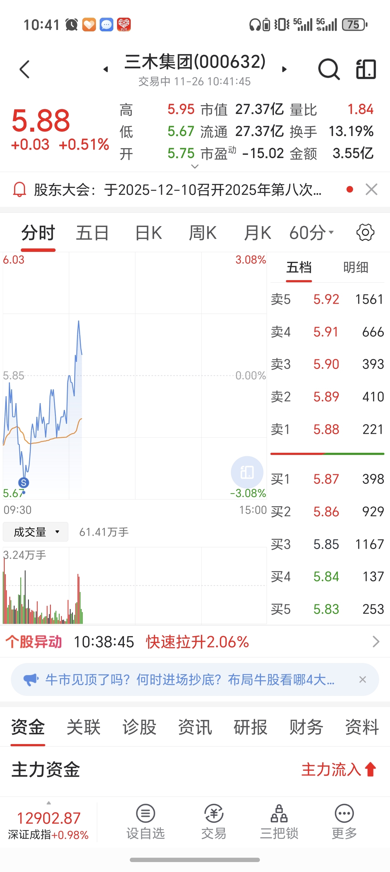 $三木集团(SZ000632)$ 兄弟们可以买了