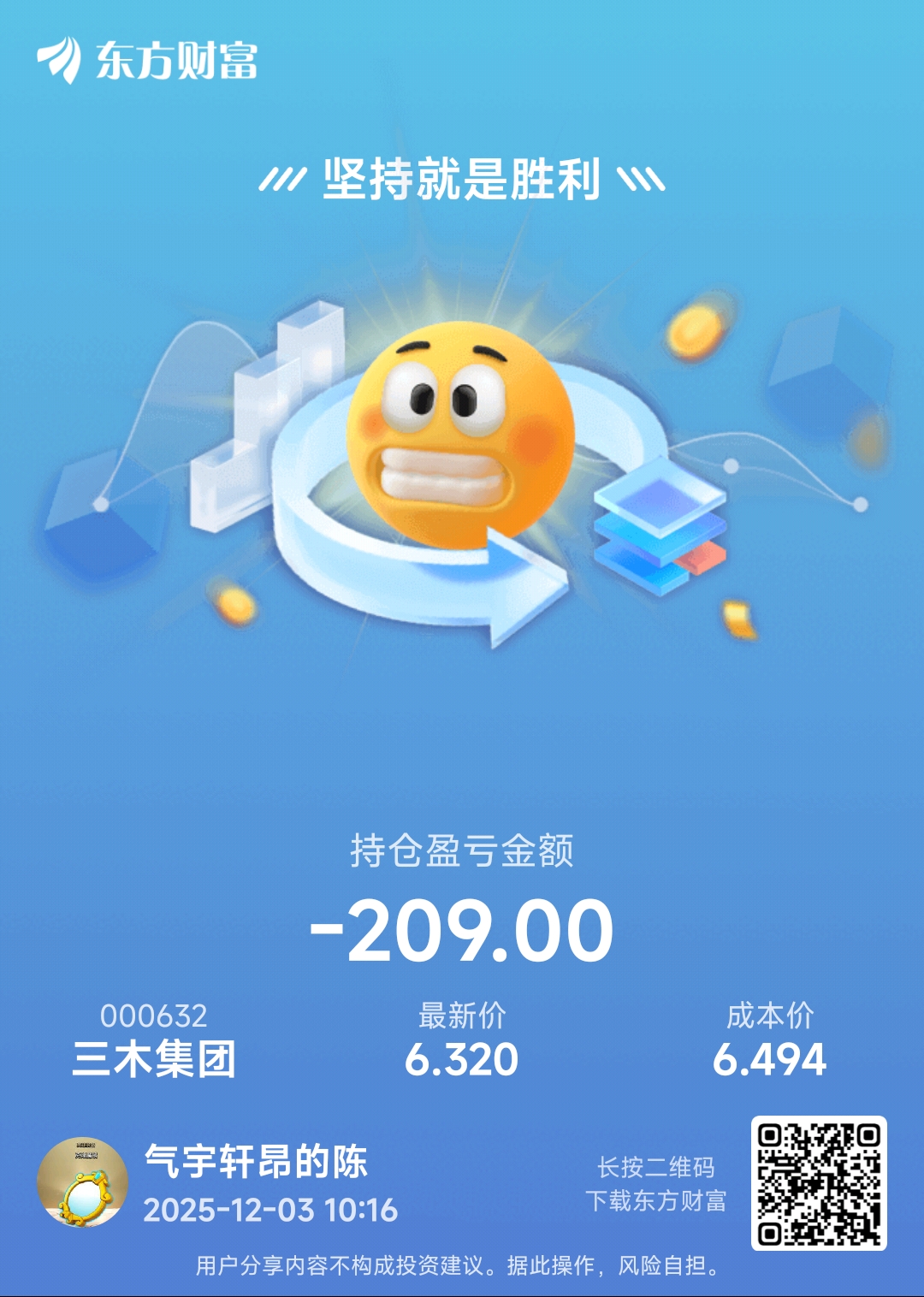 $三木集团(SZ000632)$ 进来10分钟亏200