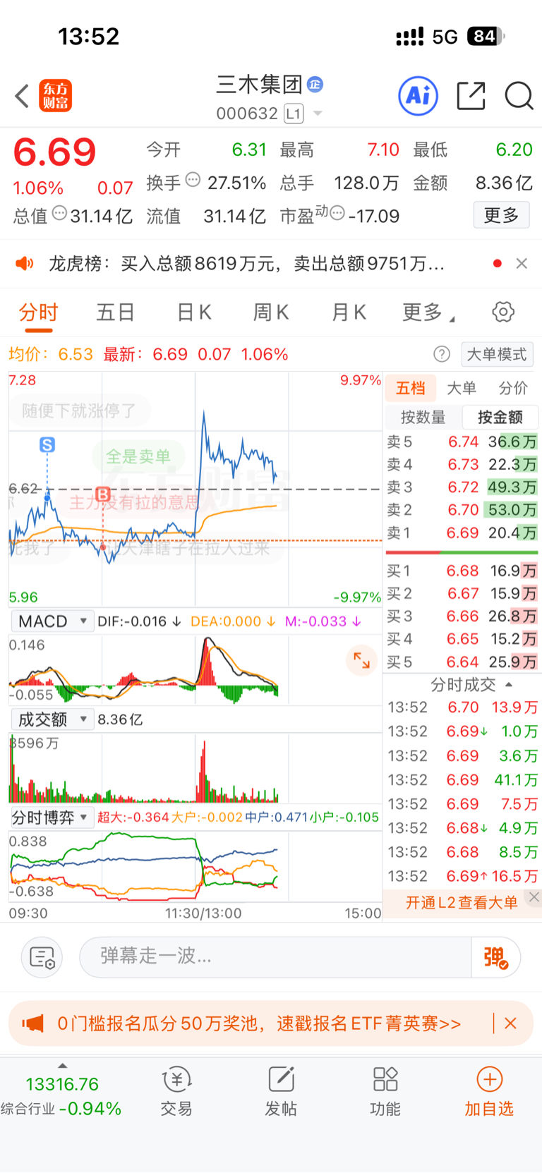 $三木集团(SZ000632)$ ,别跌了扛不住了