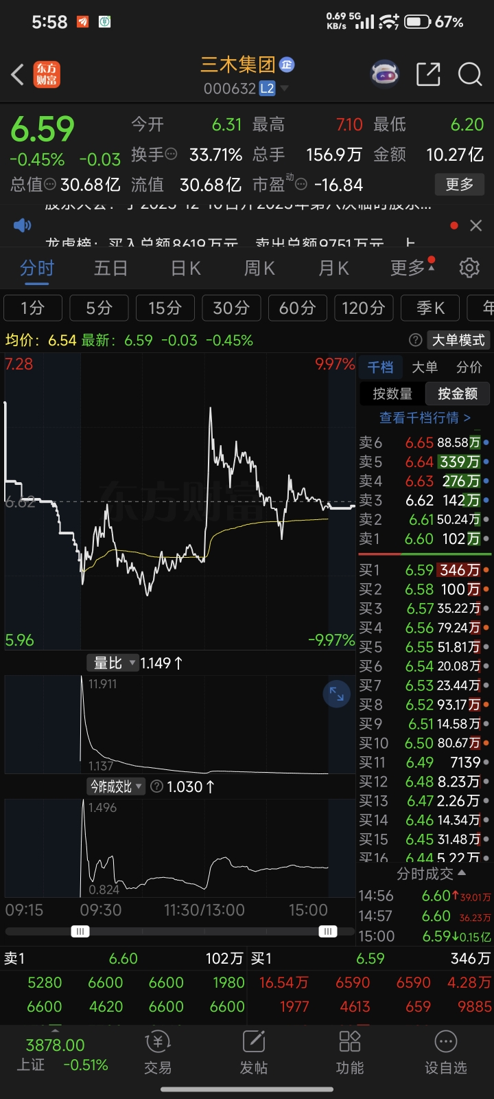 $三木集团(SZ000632)$ 今天看着追高的那一帮股神,我都给笑岔气了!我8.75被套了半个月了。居然还有人进来陪我。