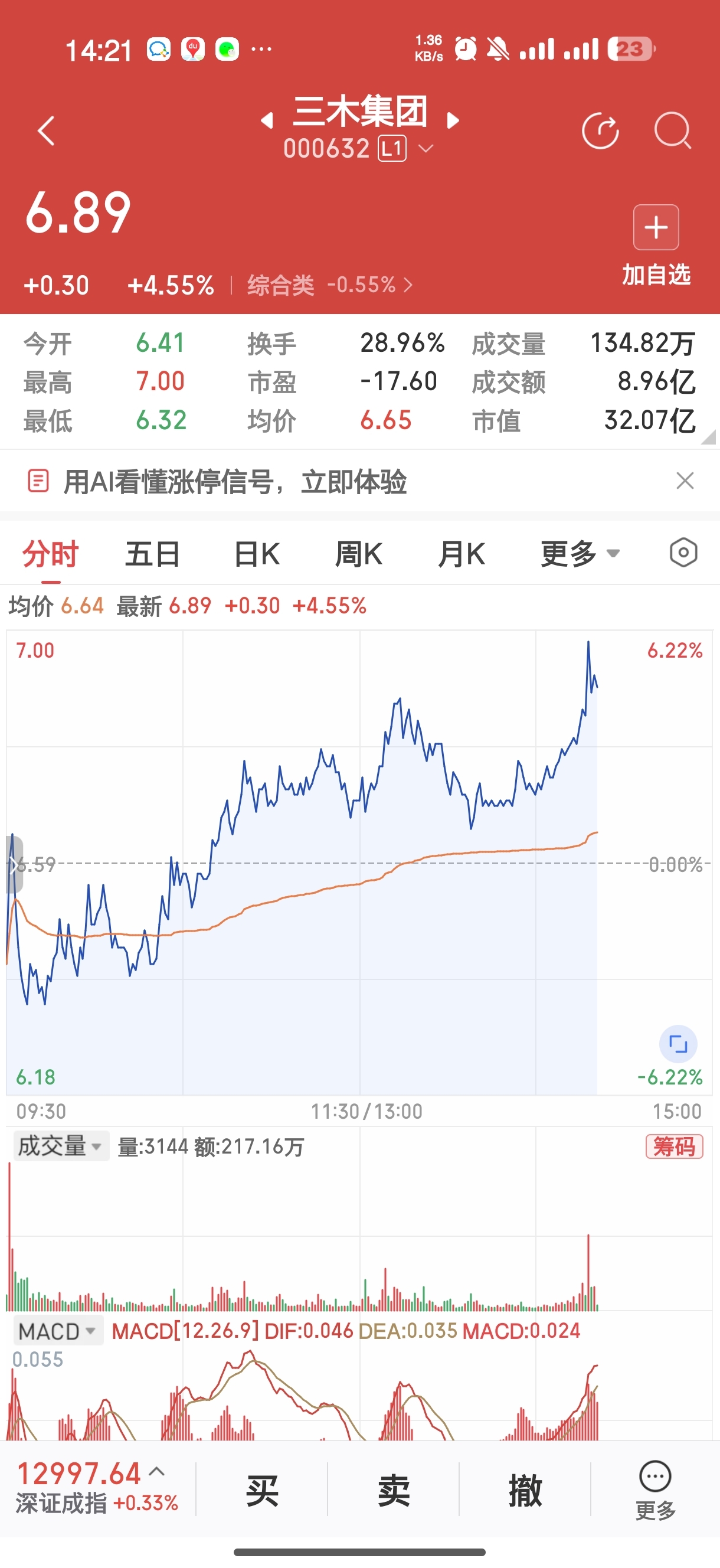 $三木集团(SZ000632)$  速度,可以减仓了。卖掉。人笨要听劝,不要贪多。。