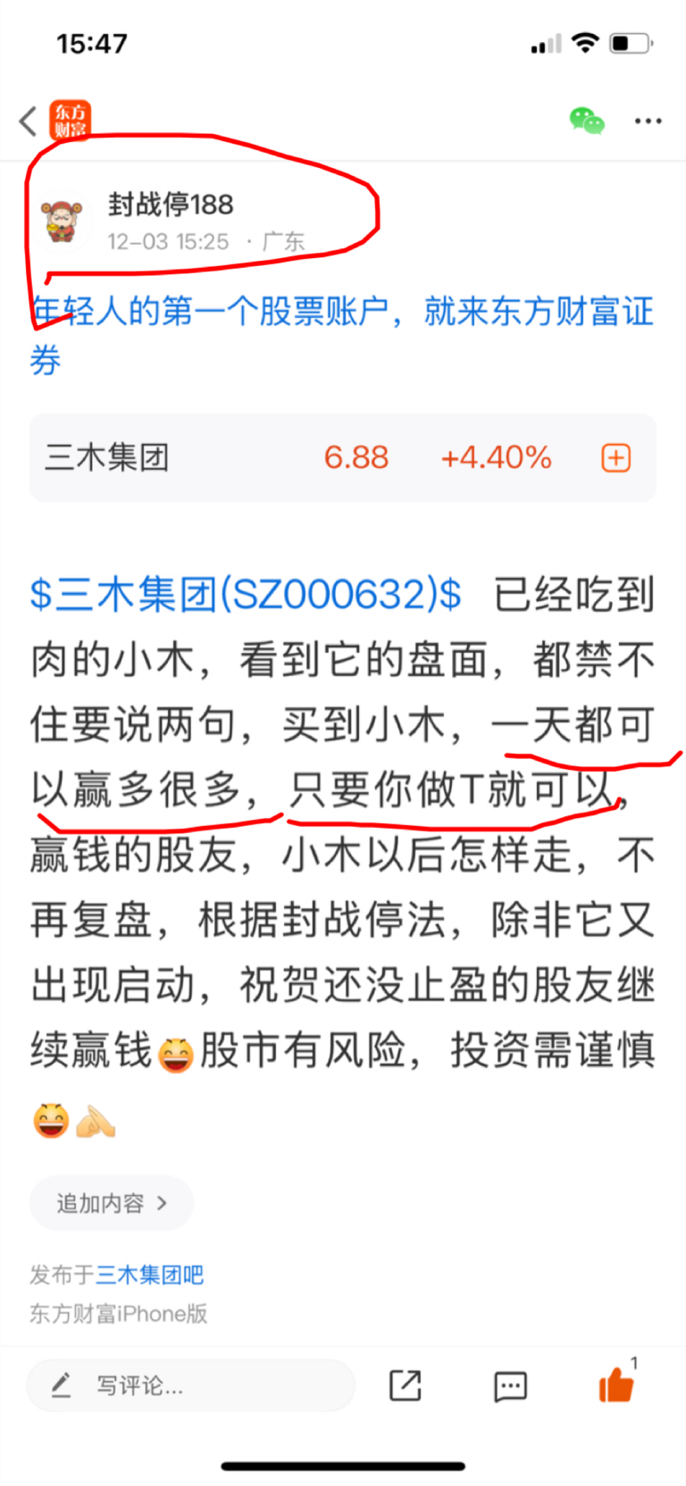 $三木集团(SZ000632)$ 本来想不关注小木的,但这几天小木量能继续放大,换手也继续放大,想不关注都不行,主力人又太好了,天天低吸高抛就可以(有底仓的情况下)