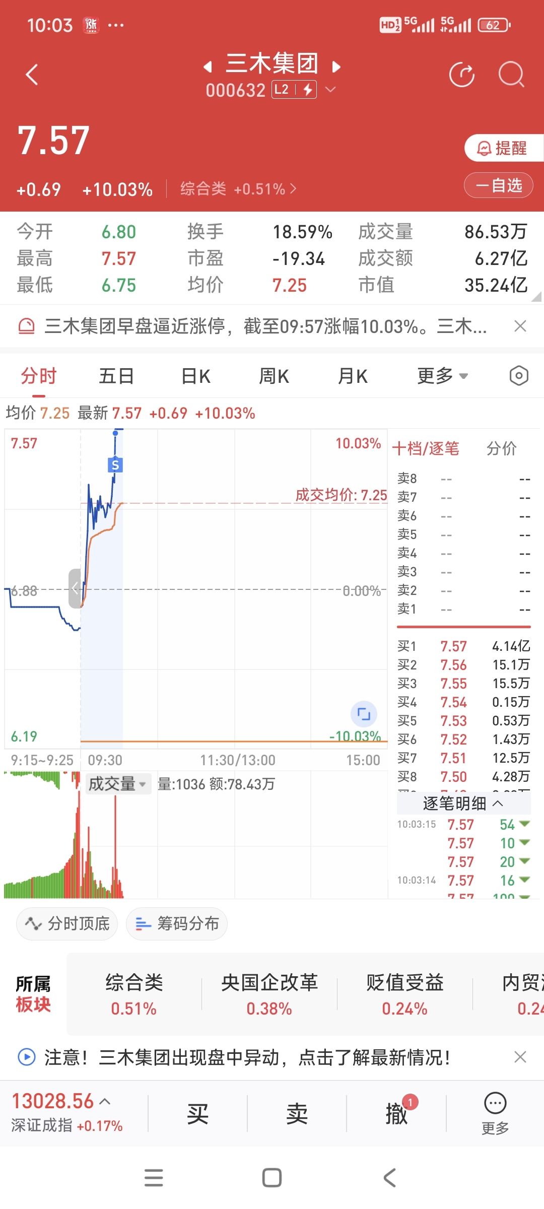 $三木集团(SZ000632)$ 落袋为安,看明天让我接回来不