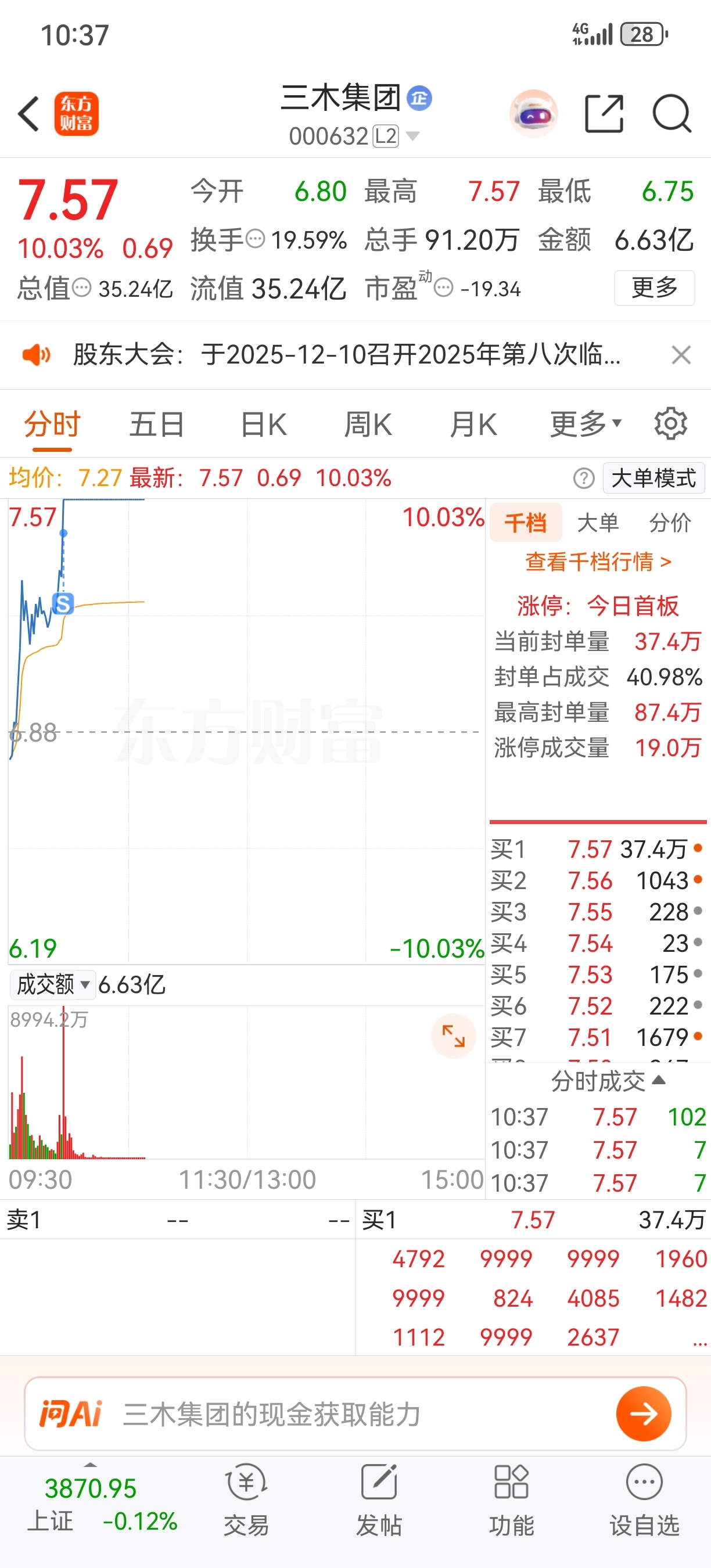 $三木集团(SZ000632)$ 上面套牢盘那么多,今天不炸板,下周机会也多多,高抛低吸