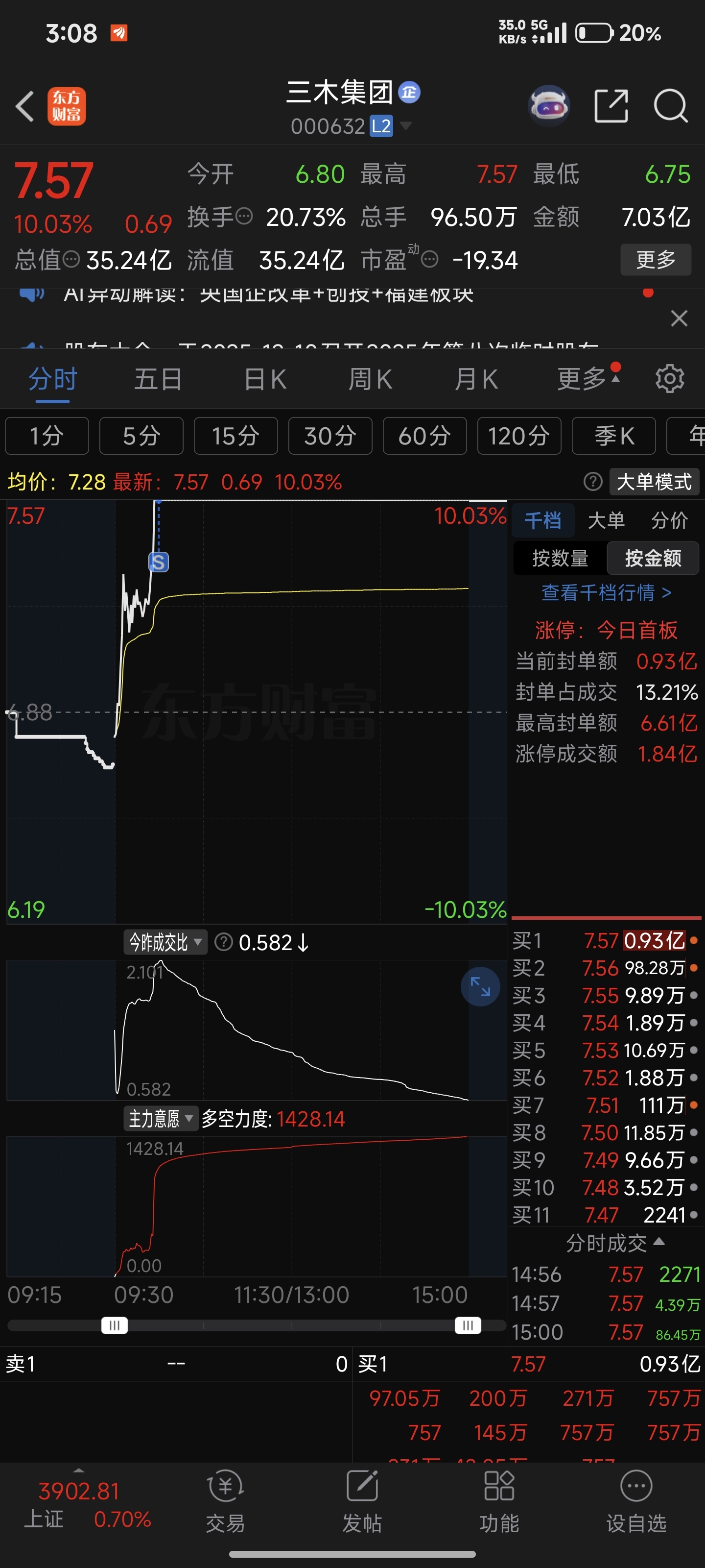 $三木集团(SZ000632)$ 11月17号板上进,被套了18天,今天板上出,终于解套回本还小赚一点。下周你就是5连板老子也不稀罕。