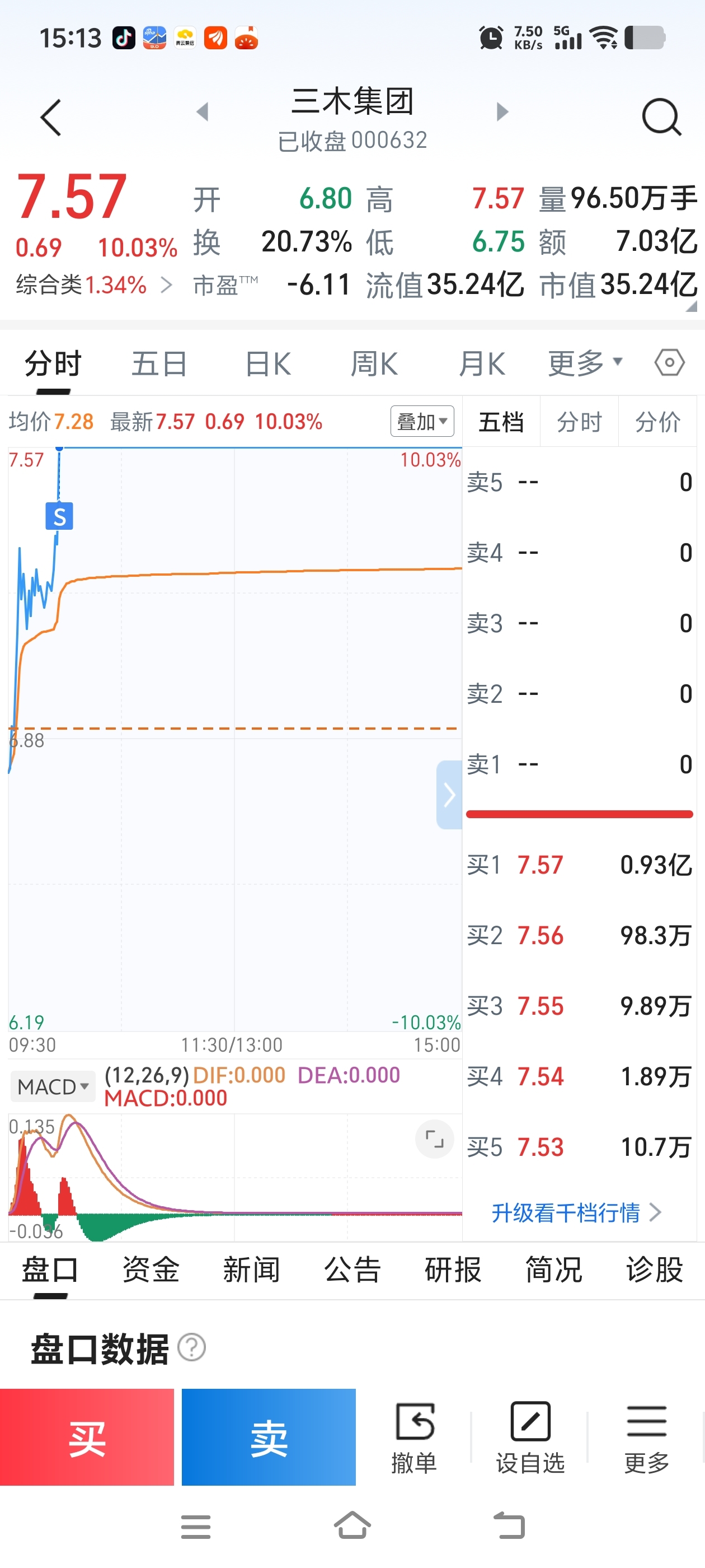 $三木集团(SZ000632)$ 手欠,早上开会挂涨停卖了