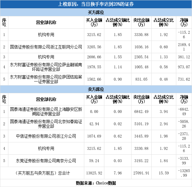 多主力现身龙虎榜,三木集团换手率达48.29%(12-08)