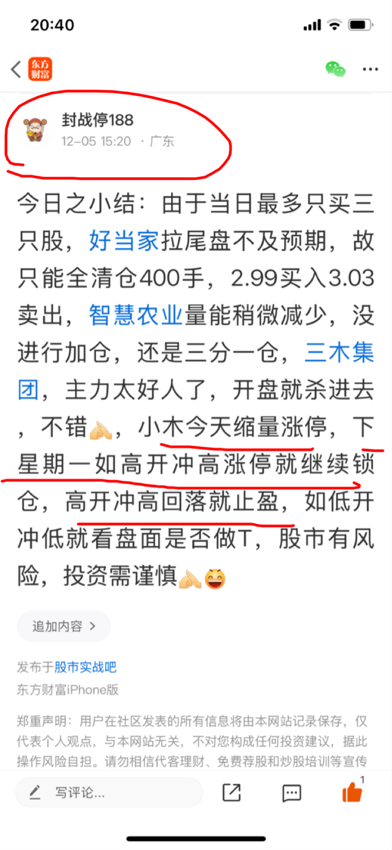 $三木集团(SZ000632)$ 小木上个星期五复盘时的计划,交易要按计划执行,但有时候也要结合盘面(这是我从小发那里得到的教训),小木的主力其实真的好人,希望它继续好人下去,让更多的人吃到肉,股市有风险,投资需谨慎