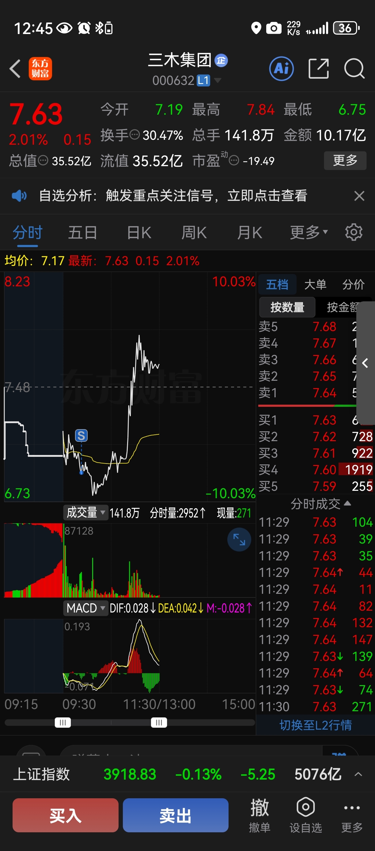 $三木集团(SZ000632)$ 昨天八块多进的 进来就跌 今天割肉就上涨
