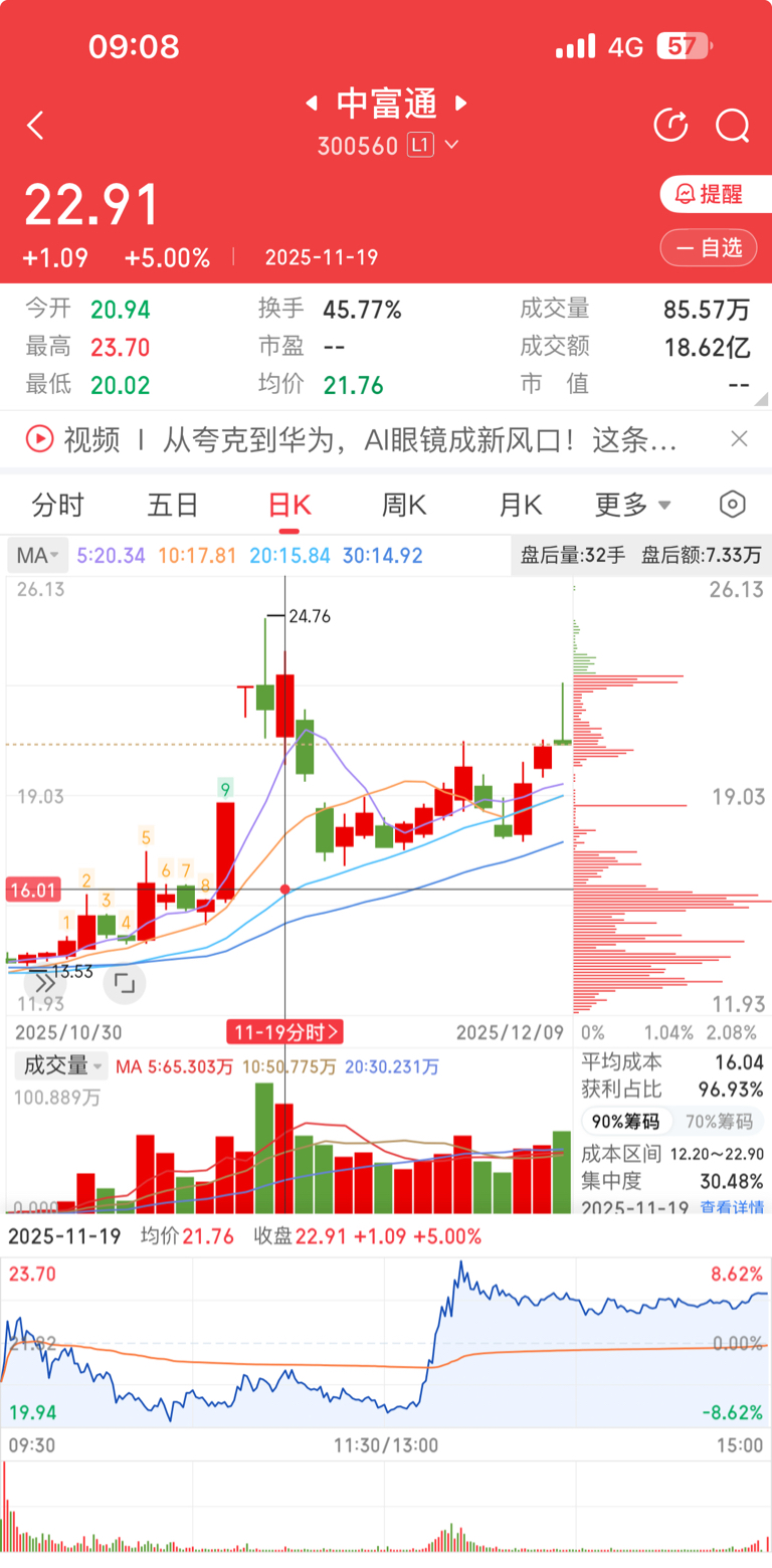 看看上周见顶的中富通。题材,玄学比三木更强,都是福建的。二波形态,不能连板,反而