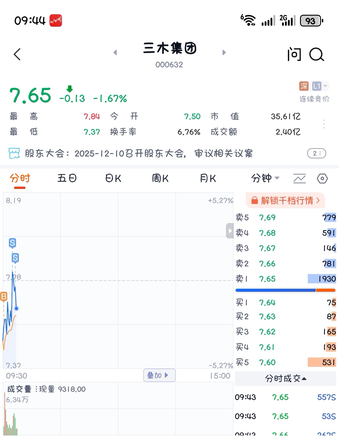 $三木集团(SZ000632)$ 开盘做个T,今天随便振幅,明天在看