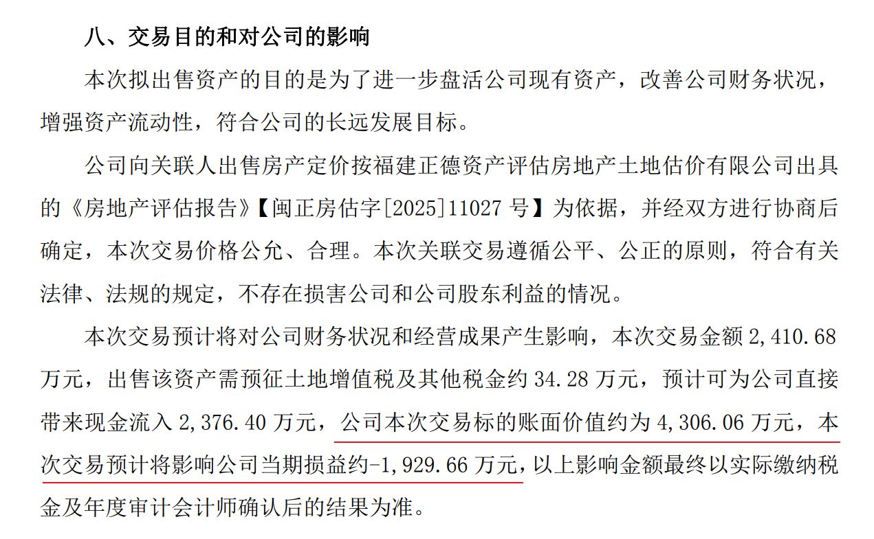 值得注意的是,此次交易的价格与资产账面价值之间存在巨大“剪刀差”。根据福建正德资产评估房地产估价有限公司出具的报告,这批房产的评估价值为2410.68万元。交易双方最终协商确定的转让价款也锁定在这一数字。