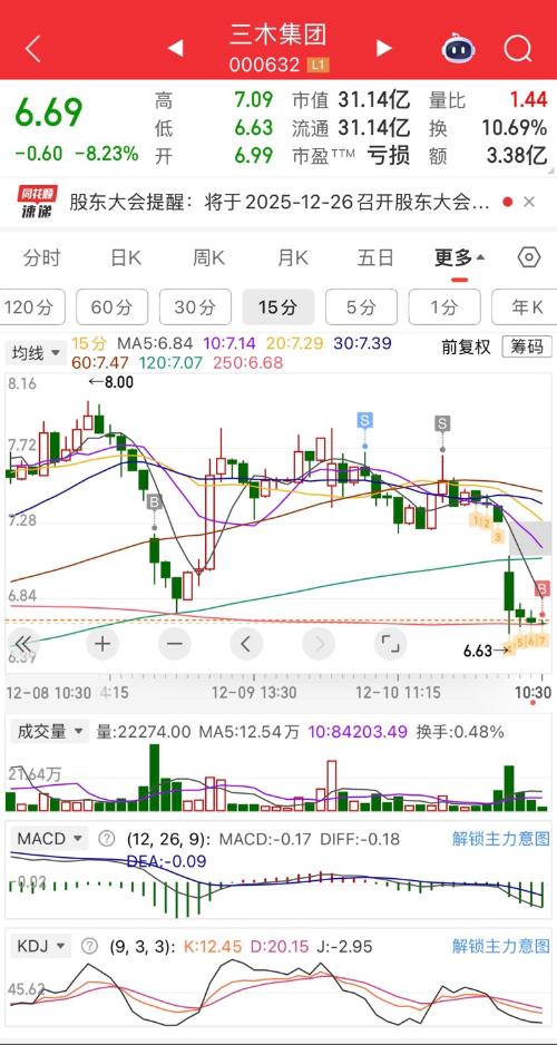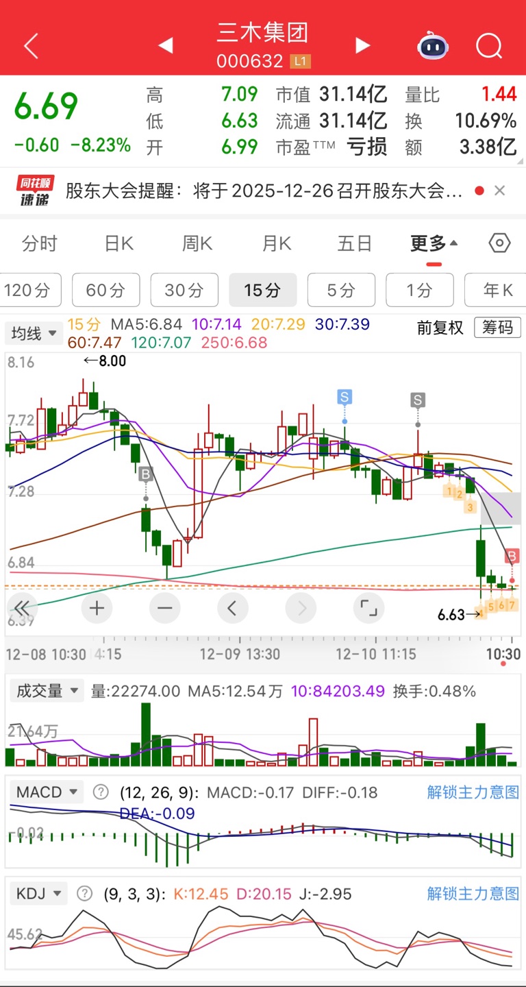 $三木集团(SZ000632)$  昨天很多兄弟7块抄底,10个点知足。合富平谭拉了尾盘,明天肯定废了。三木明天跌破7块再来