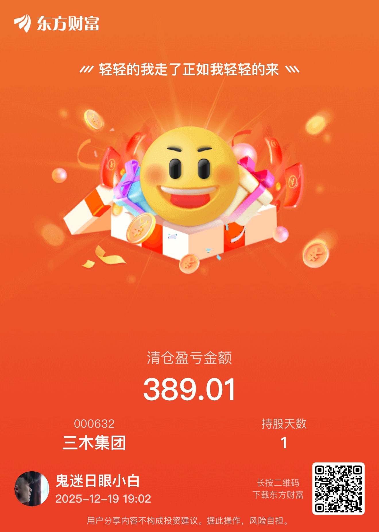 $三木集团(SZ000632)$ 今天下车了,没亏,祝在车上的赚的盆满钵满,今天三木爹算是硬气了一回