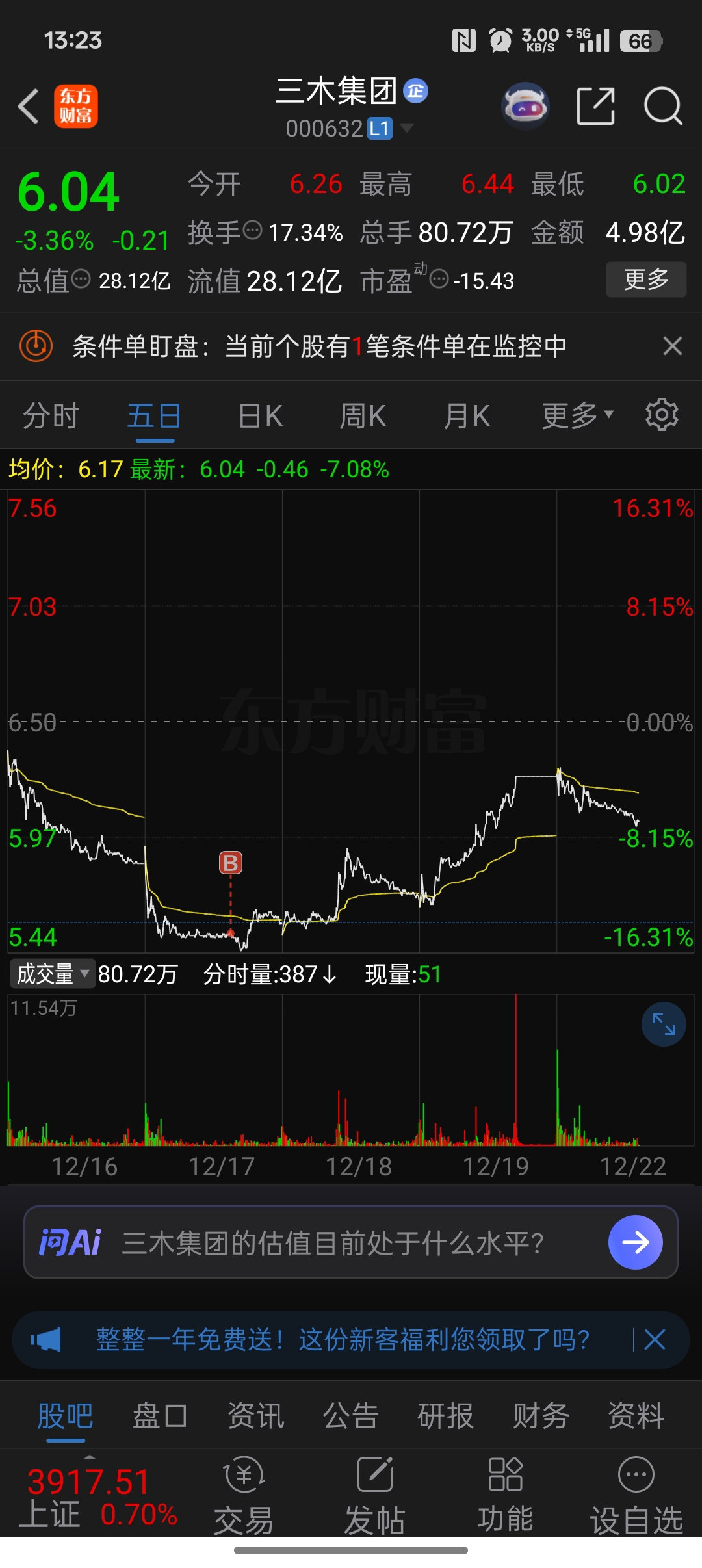 $三木集团(SZ000632)$ 跌嘛跌嘛,跌倒成本线就当没赚钱!