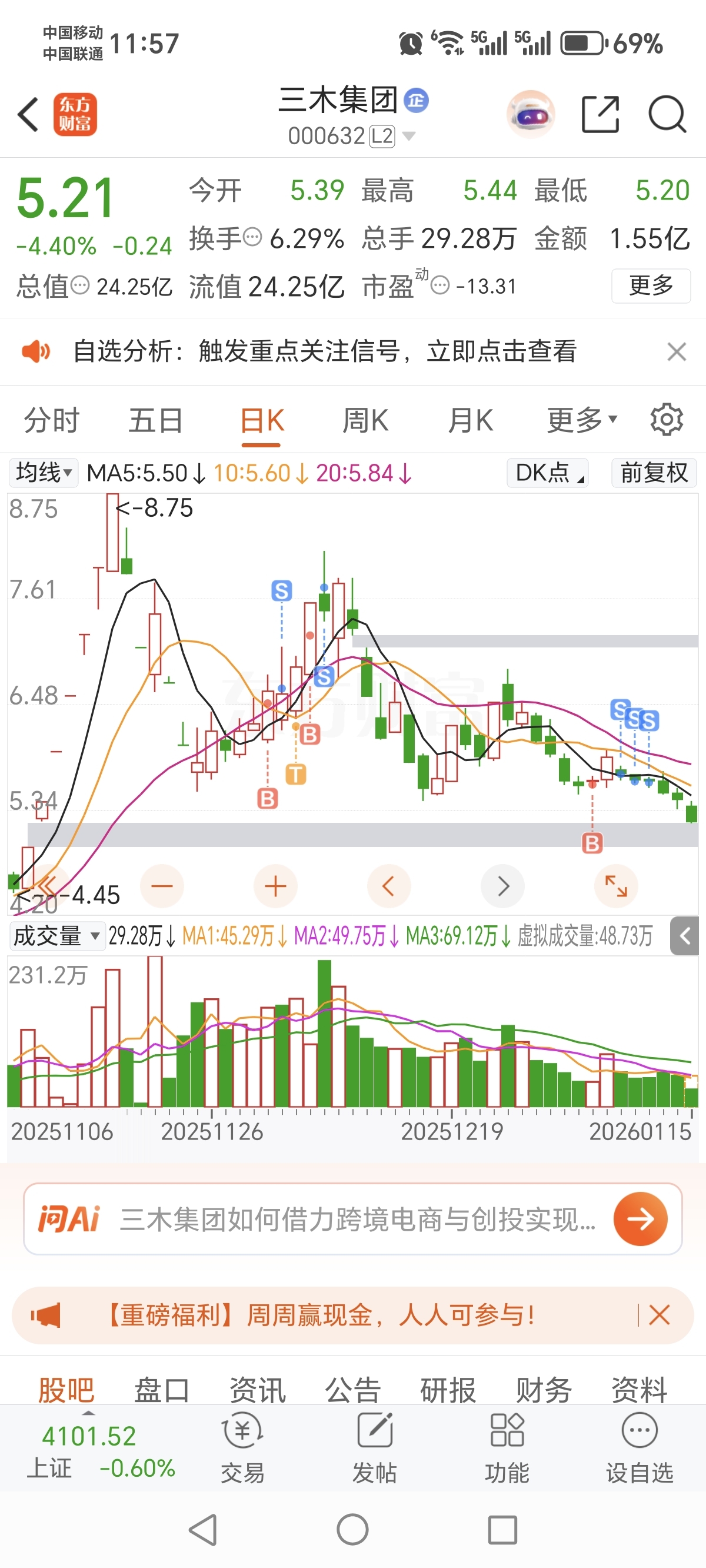 $三木集团(SZ000632)$ 跌的过份了,你成功吸引了我的关注,还在观察哈