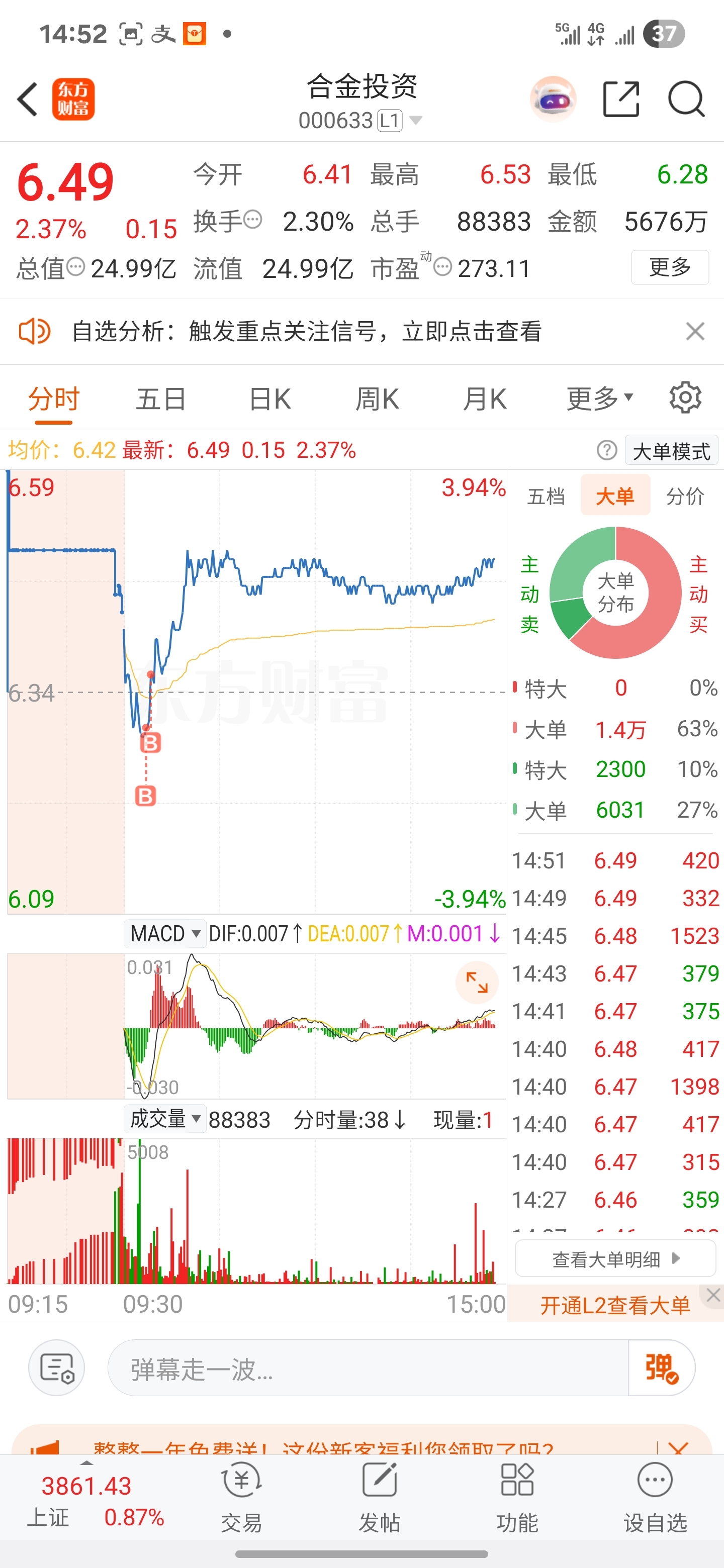 $合金投资(SZ000633)$ 呼叫卡拉米,我胡汉三又回来了,今日放小量,兄弟你还在吗