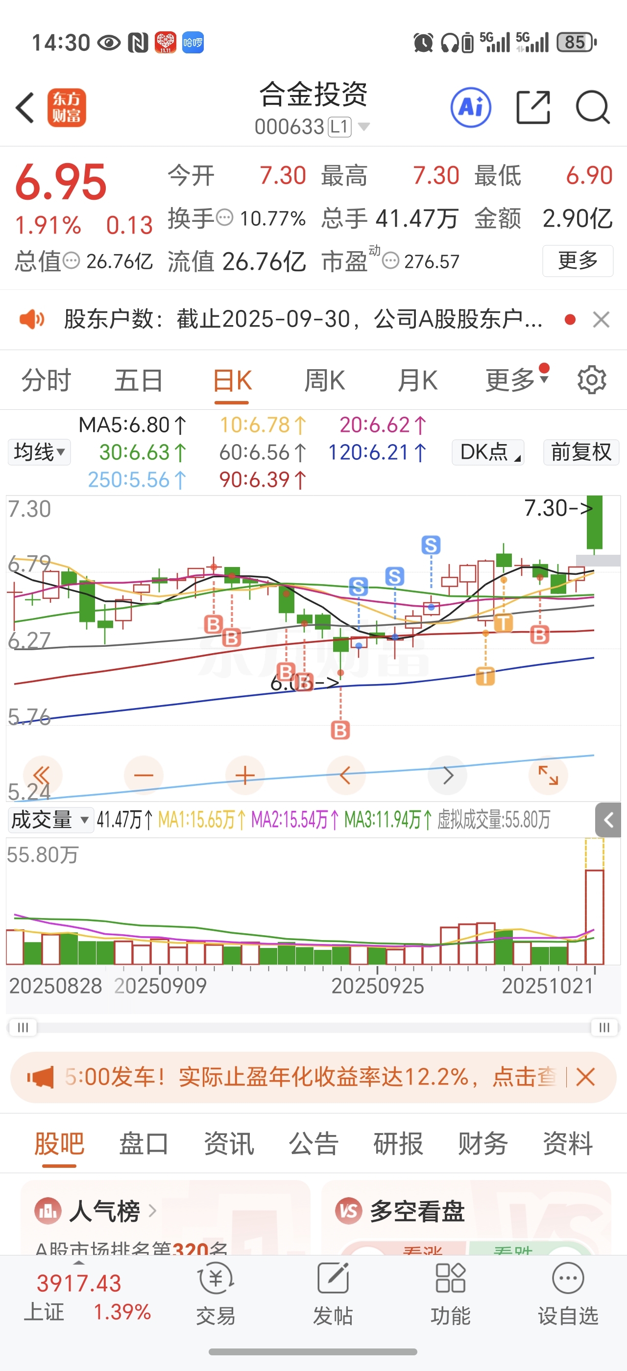 $合金投资(SZ000633)$ 今天这算是高位放量吧,明天完蛋,2点40还没动静得跑一半,不然又要调整一段时间了