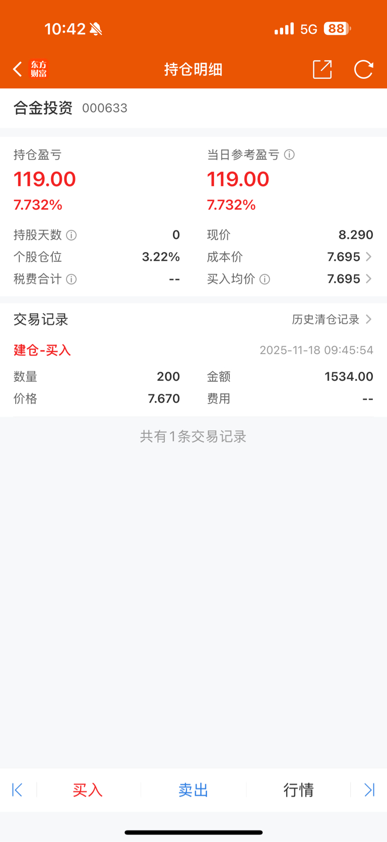 $合金投资(SZ000633)$ 剩下的余额,没有想到吃到7个多点