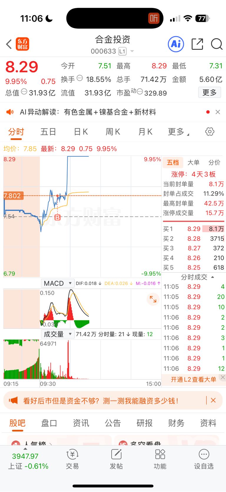 $合金投资(SZ000633)$ 关注我每天复盘思路哦