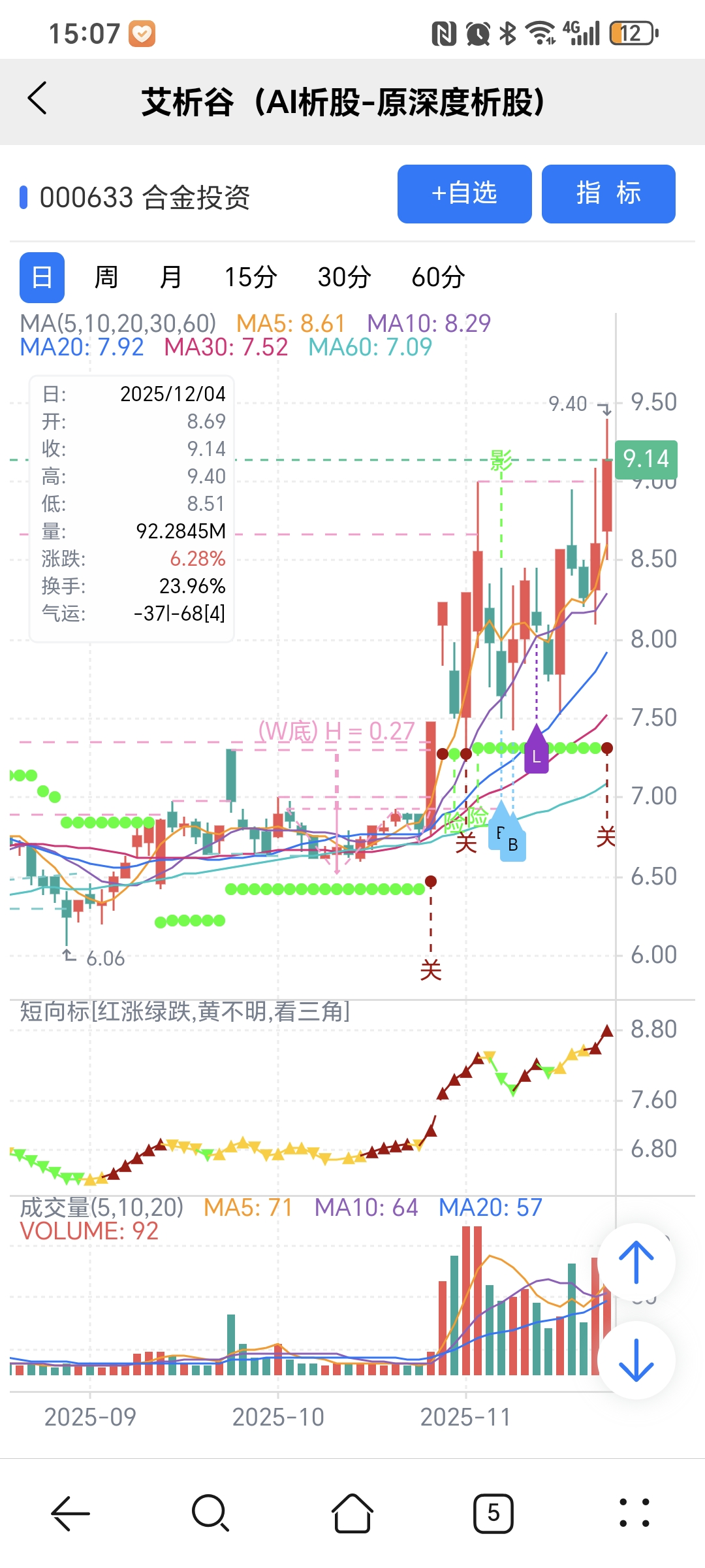 红绿小圆点是艾析谷的量化指标-超级短趋线,是趋势跟踪+突破类的量化指标,完全免费。