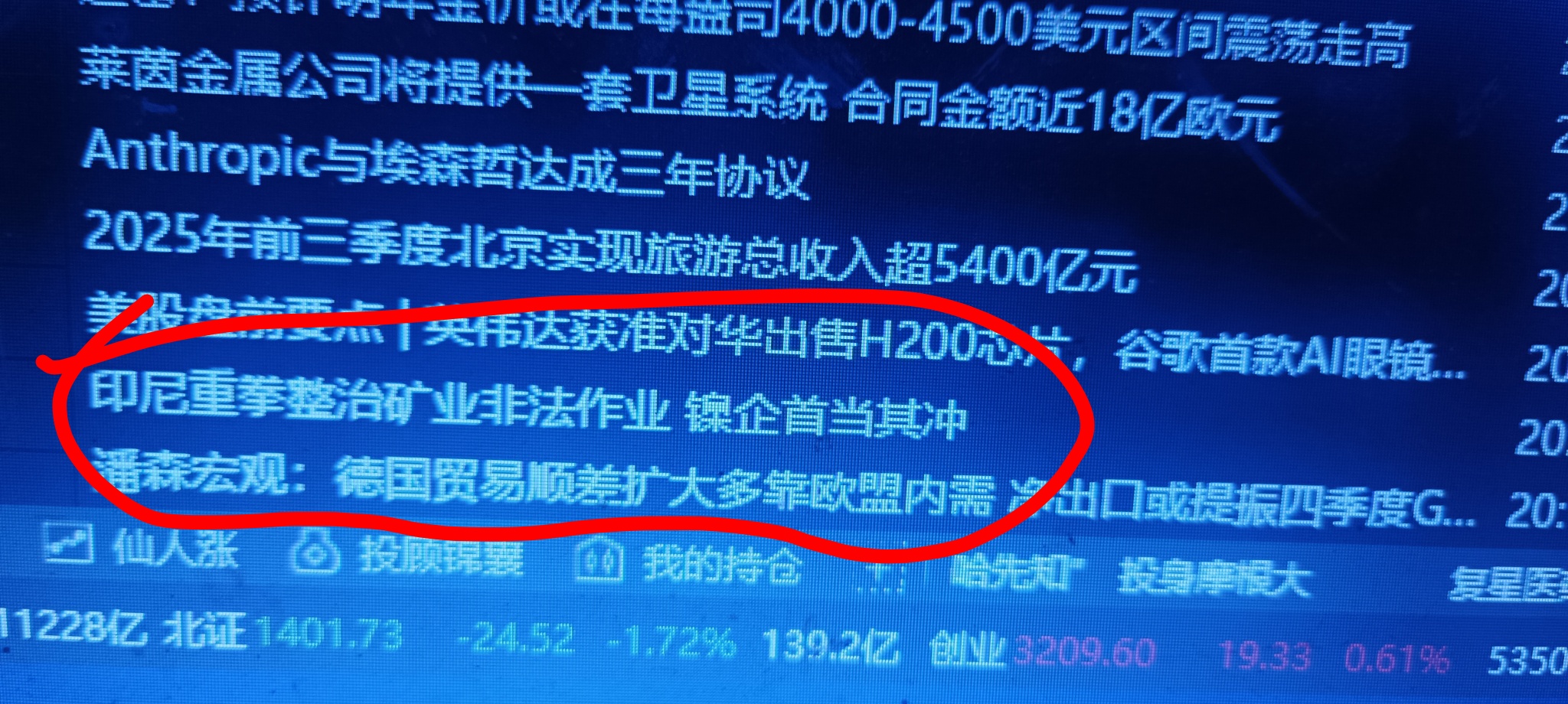 $合金投资(SZ000633)$ 今天下跌的原因之一有印尼政府收紧矿产资源和整治矿开采作业,某消息指出镍企首当其冲