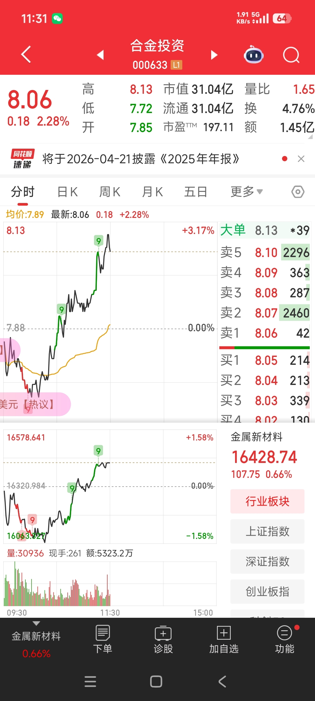 $合金投资(SZ000633)$ 金属材料起来了这货就起来了。说了东方很多归类都不准确。农业种植业也是。